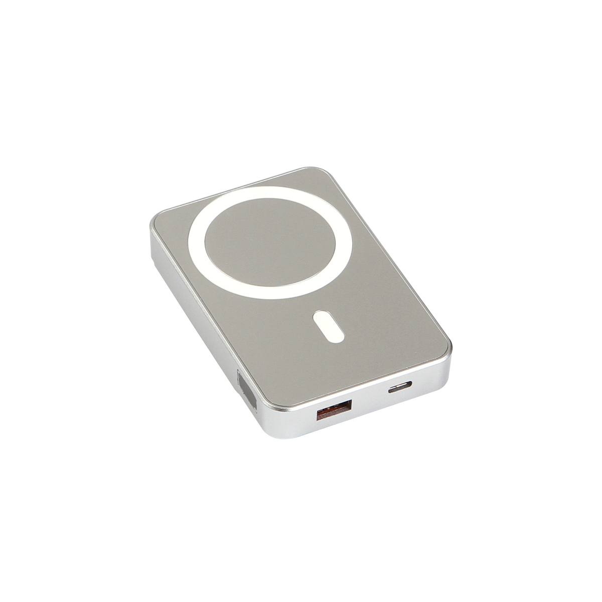 Cargador magnético fabricado en plástico ABS+PC, inalámbrico portátil capacidad de 10,000 mAh, batería externa, carga rápida 20 W, Wireless 15 W, compatible con USB-C.