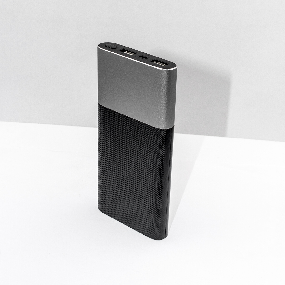 Power bank rectangular fabricado en aluminio de carga doble, 10,000 mAh. Incluye cable tipo pulpo con 3 salidas para diferentes dispositivos (IOS y Android).