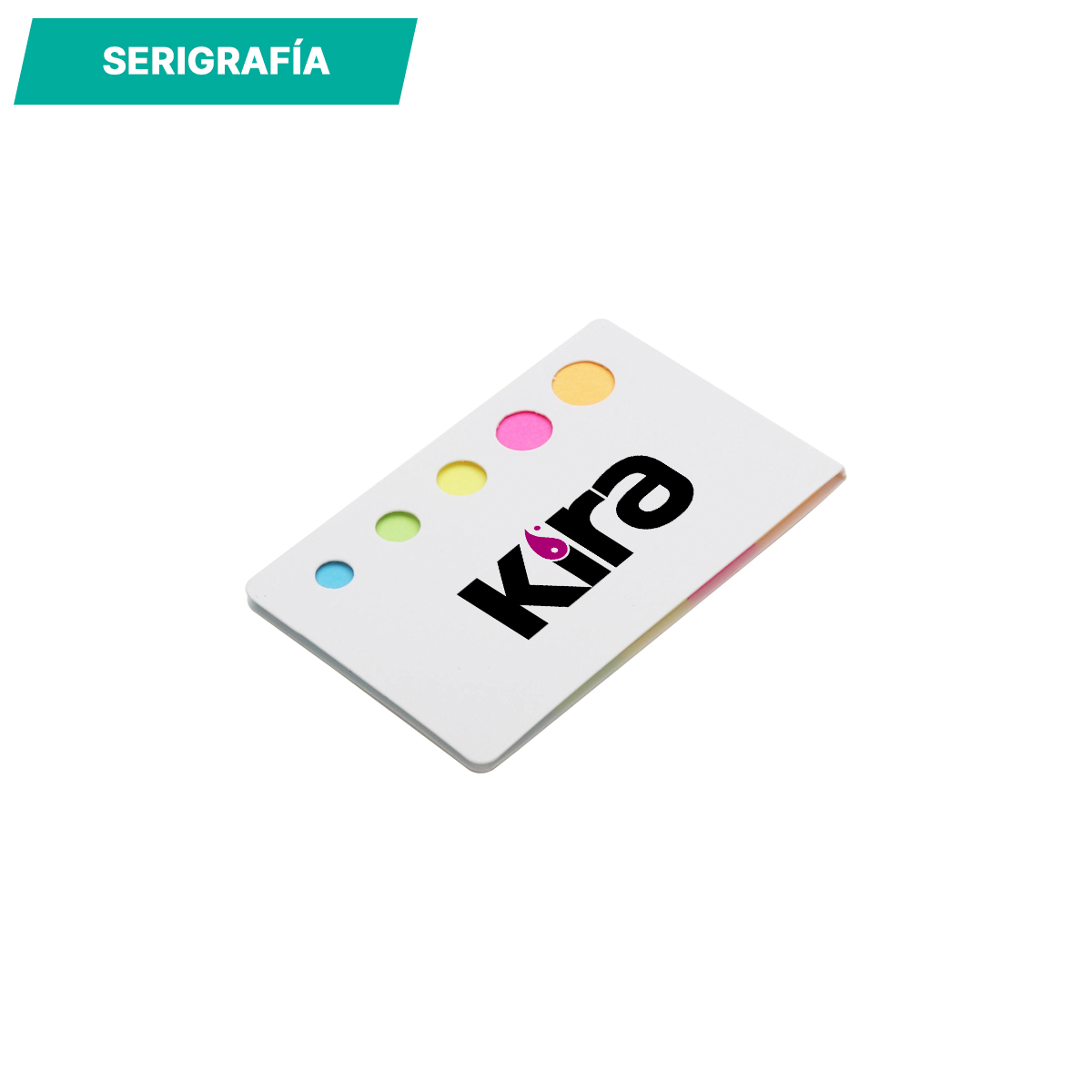 Set de 25 banderines adheribles en 5 colores y cubierta protectora con orificios.