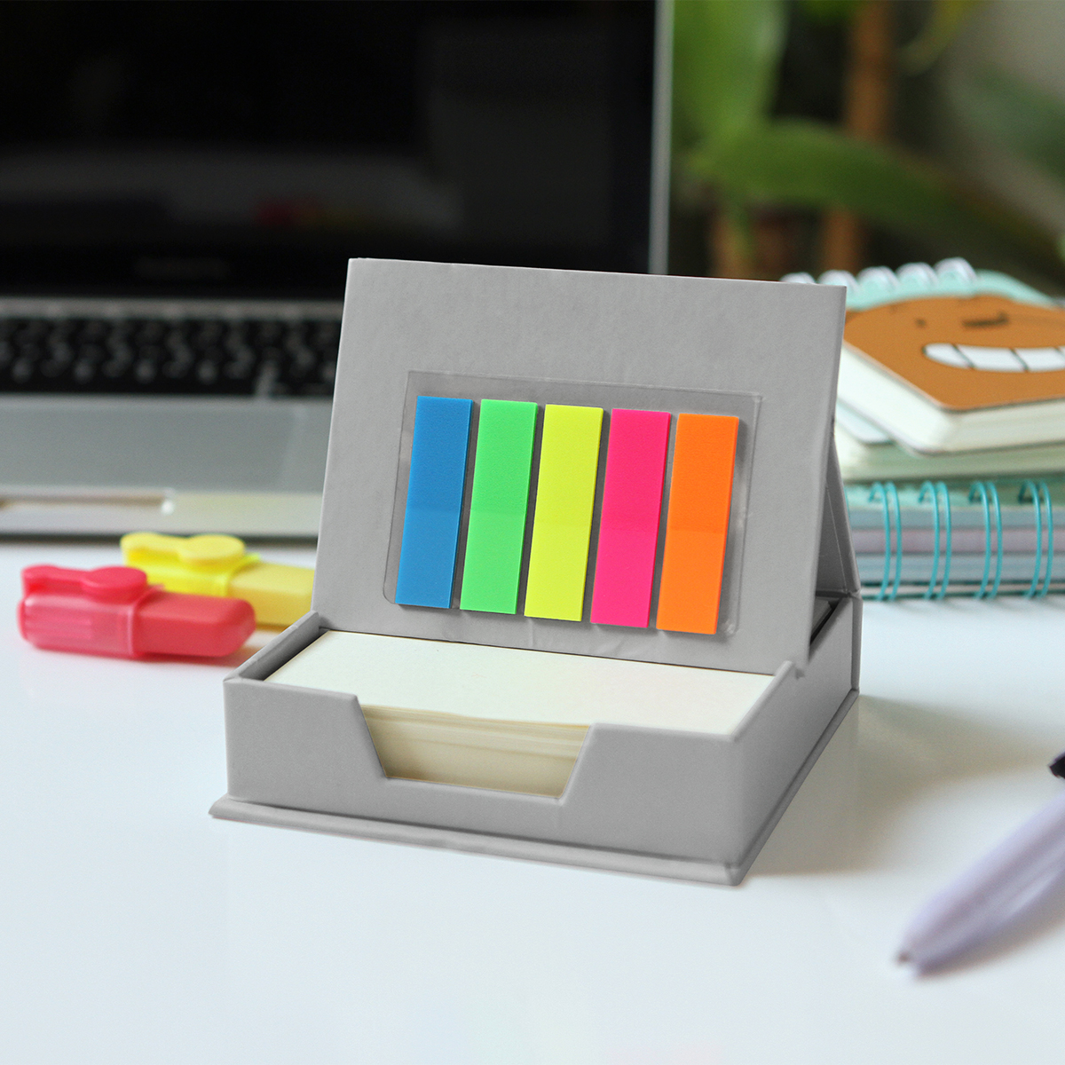 Set ecológico con cubierta rígida que se dobla para poder usarse como soporte, 120 hojas para notas y banderines adheribles.