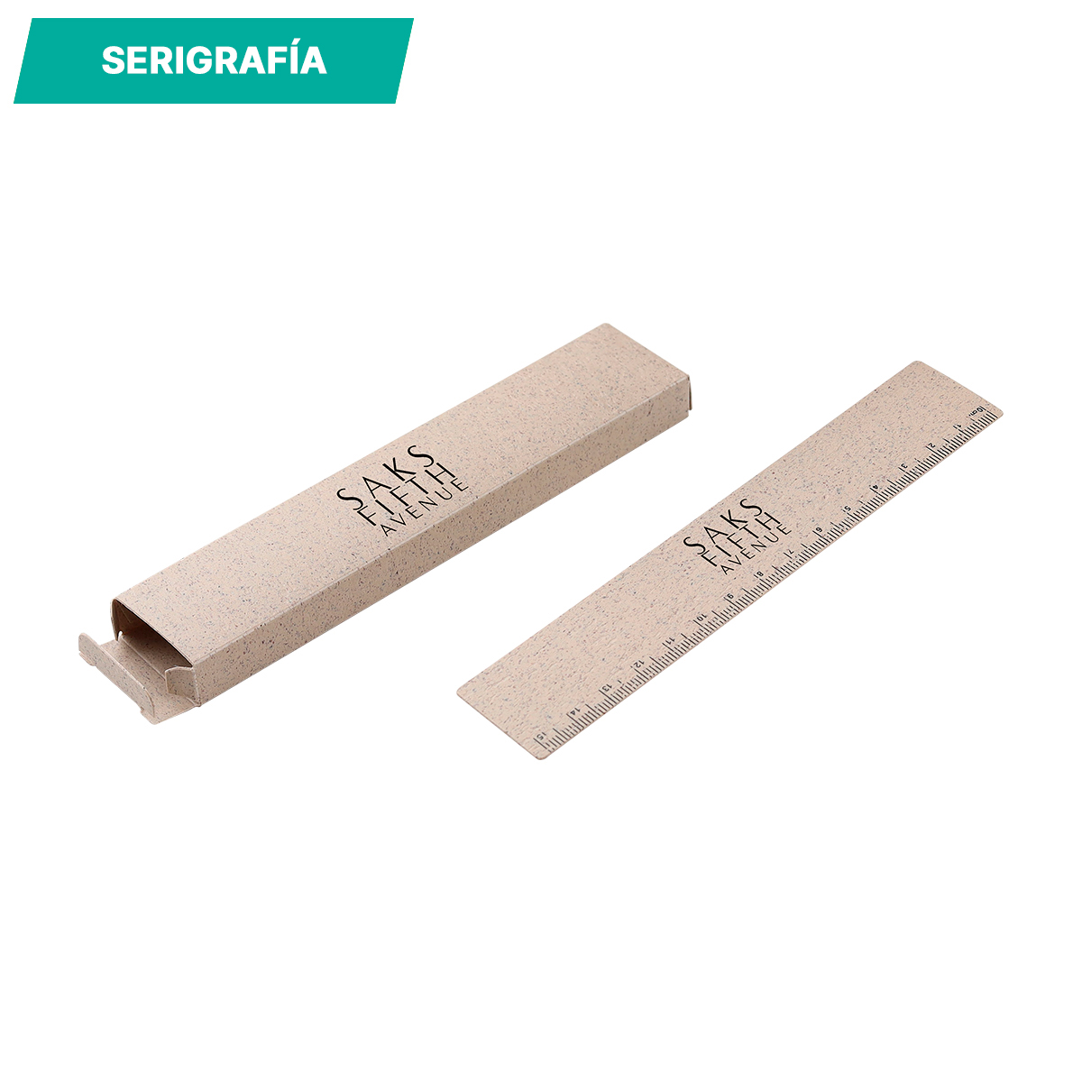 Set escolar fabricado 60% plástico ABS y 40% fibra de trigo. Incluye regla de 15 cm, lapicero, bolígrafo con tinta negra y goma; todo en un estuche fabricado en el mismo material ecológico.