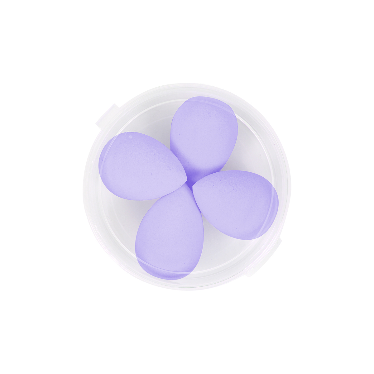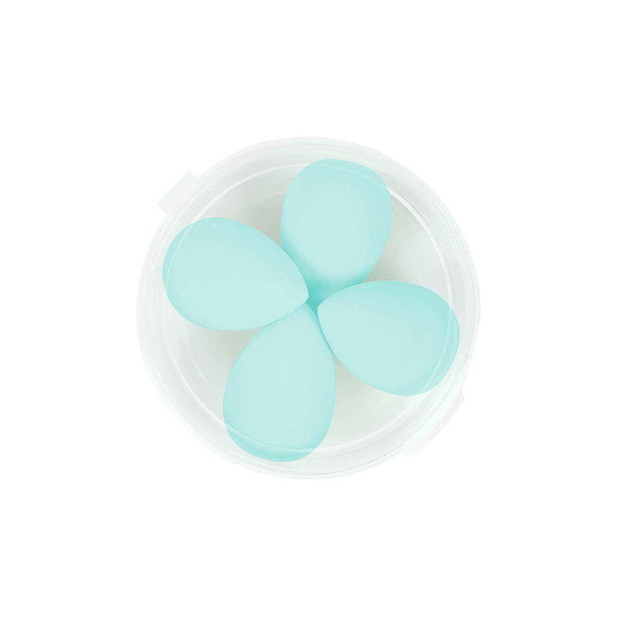 Set de 4 esponjas para maquillaje, fabricadas en poliuretano hidrofílico. Incluyen estuche de plástico.