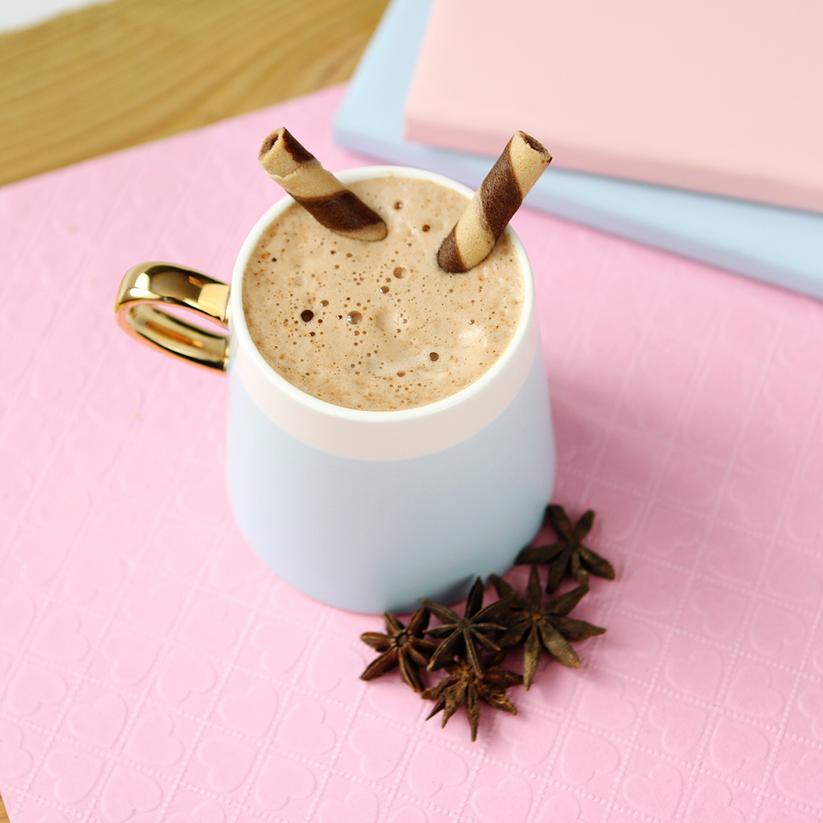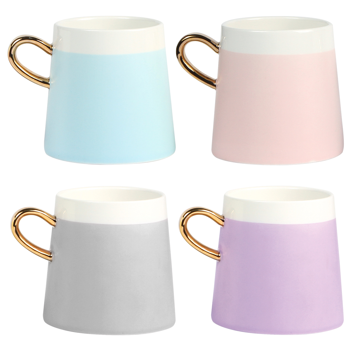 Taza de cerámica bi-tono con asa dorada. Capacidad de 360 ml. Incluye caja de cartón individual.