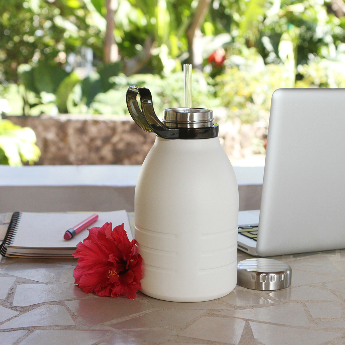 Termo cilindro de acero inoxidable doble pared con doble tapa de seguridad, tapa interior fabricada en ABS con popote plástico flexible y tapa exterior de acero inoxidable, cuello con manija plástica de diseño ergonómico para su fácil transporte. Lleva tus bebidas calientes de manera fácil y segura sin derrames. Incluye caja individual. Capacidad de 1500 ml.