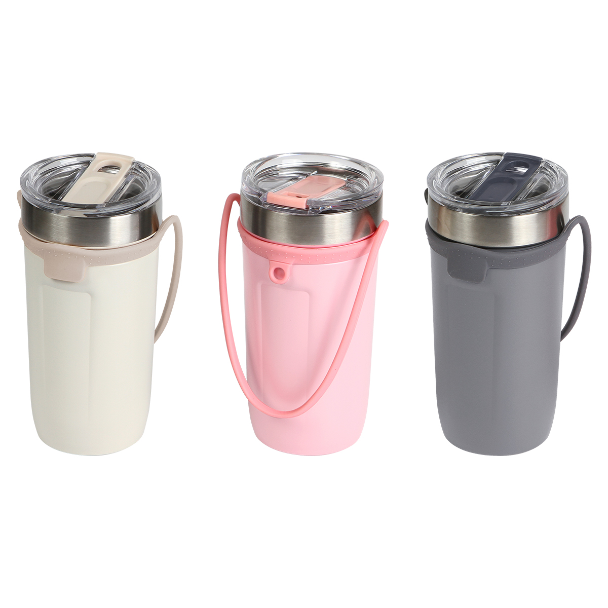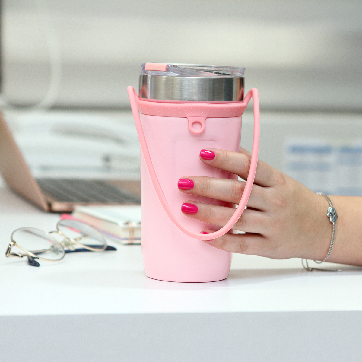 Termo doble pared de acero inoxidable con asa de silicona y tapa deslizable antiderrames. Capacidad de 480 ml. Lleva tus bebidas calientes como café o té sin la preocupación de sufrir derrames y se la sensación con su diseño de asa para mayor comodidad. Incluye caja individual.