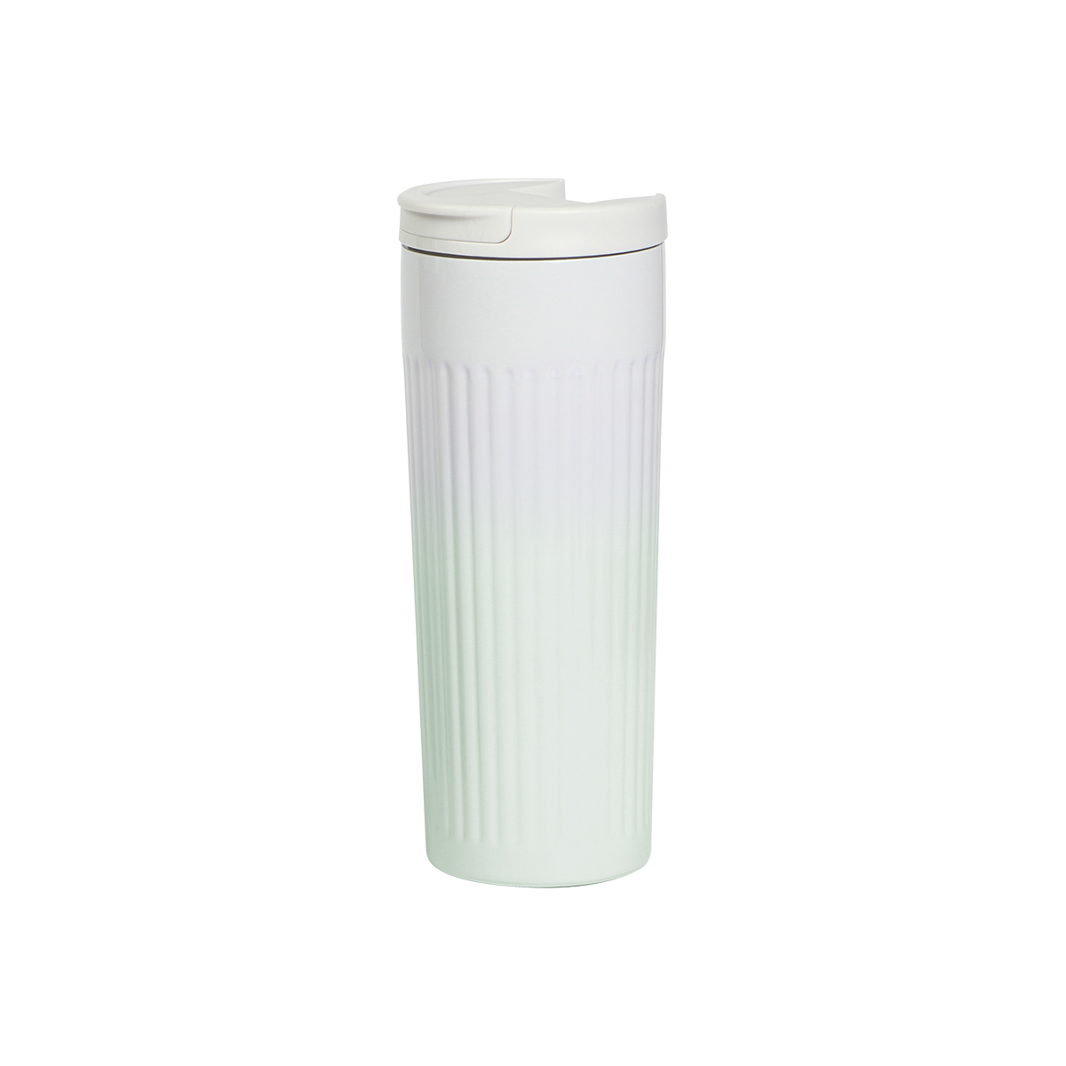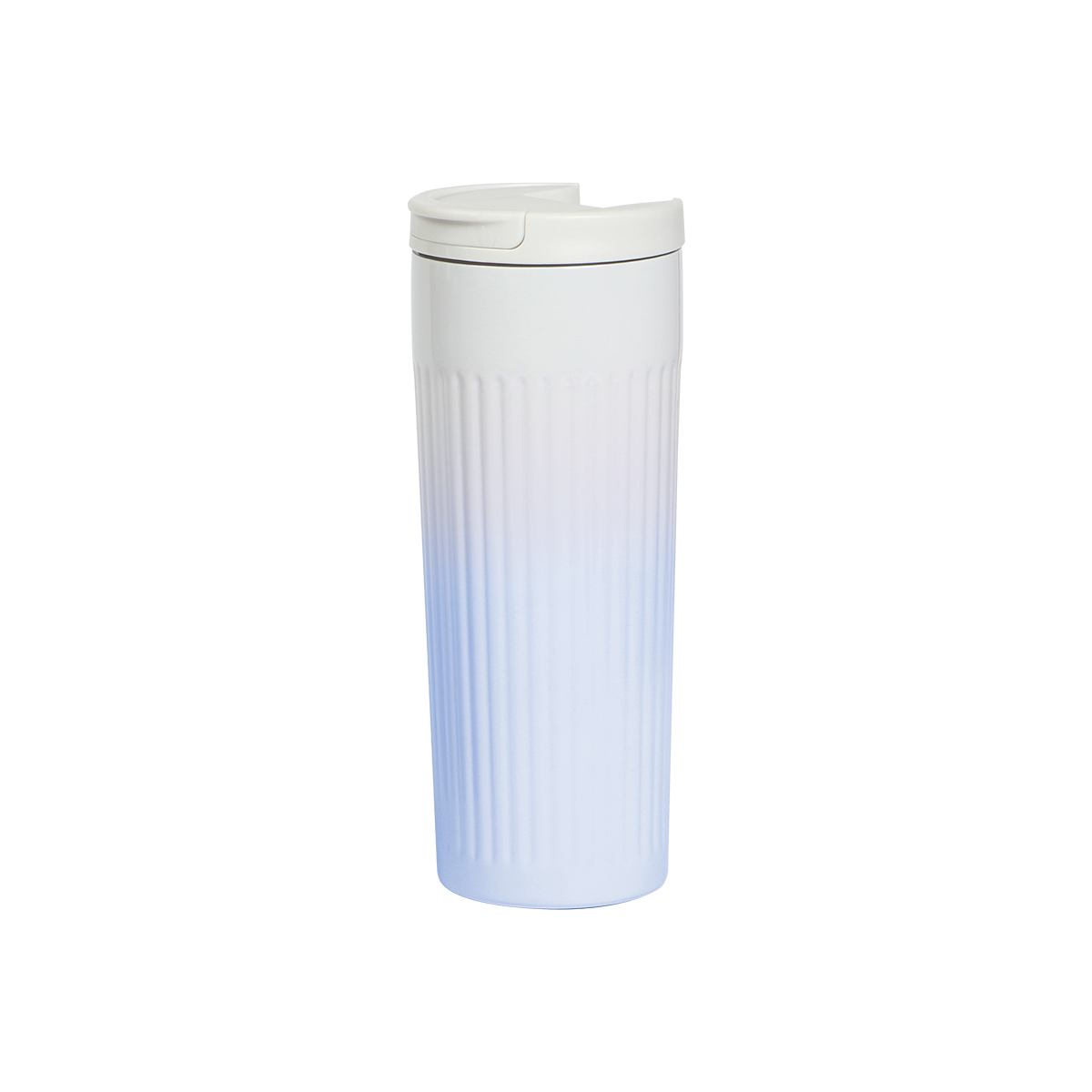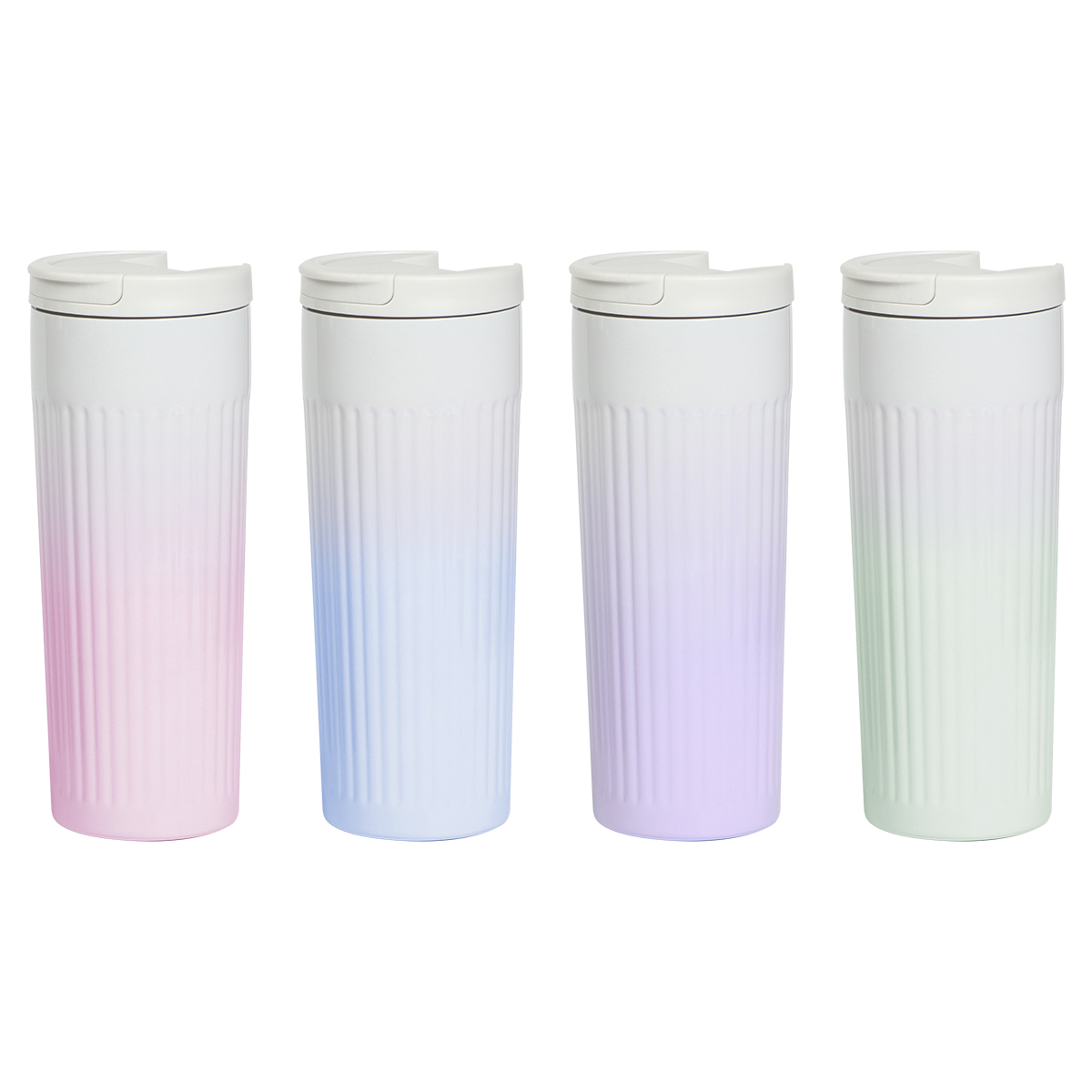 Termo cilindro de doble pared de acero inoxidable con tapa plástica y colores degradados, capacidad de 500 ml. Incluye caja individual.