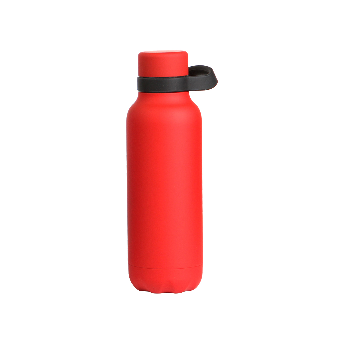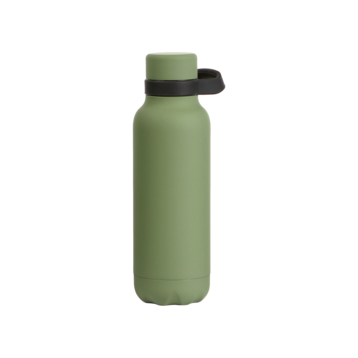 Termo de doble pared fabricado en acero inoxidable, con capacidad de 750 ml, y agarradera de silicón.