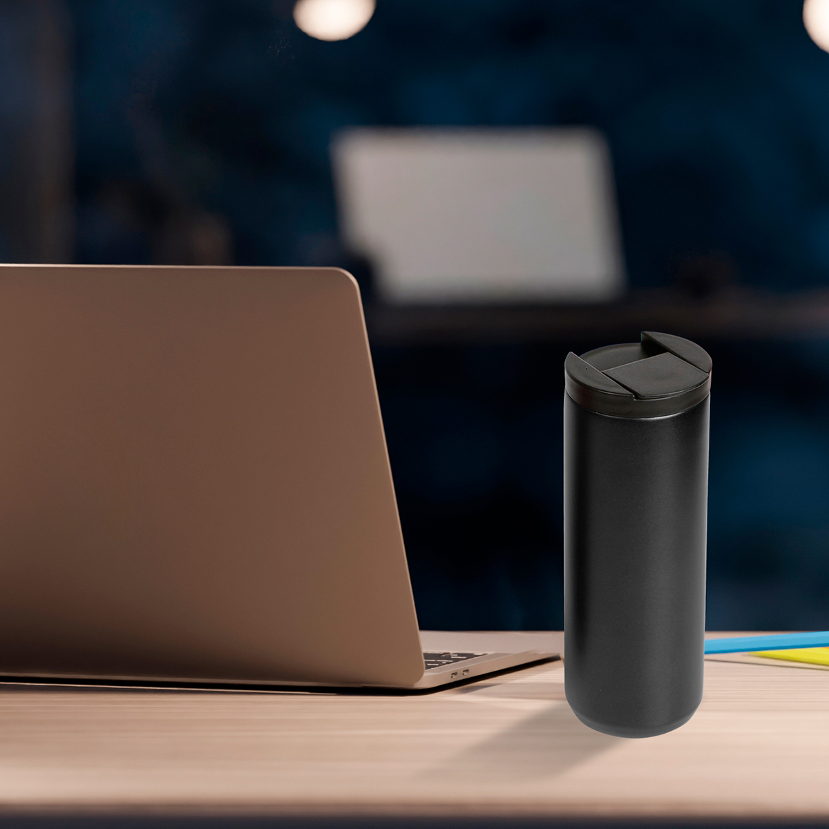 Termo doble pared de acero inoxidable con tapa plástica. Capacidad de 500 ml.