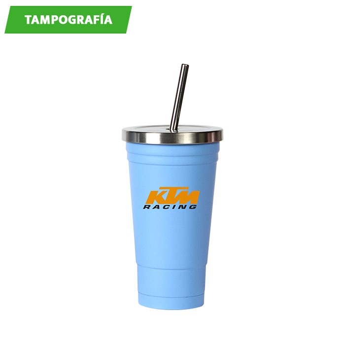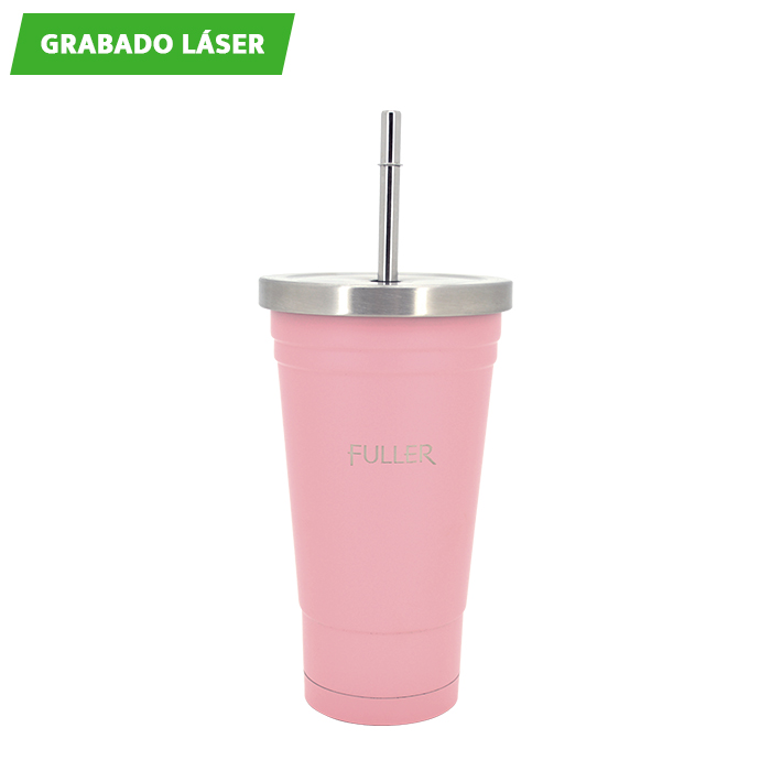Vaso de acero inoxidable doble pared con tapa y popote metálicos, fabricado en materiales de grado alimenticio, mantiene bebidas frías o calientes por un largo tiempo, no usar en microondas, capacidad de 500 ml (17 oz) . Incluye caja de cartón individual.