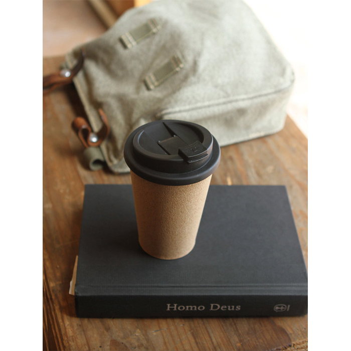 Vaso de polipropileno con cubierta de corcho y tapa antiderrame. Capacidad 350 ml.