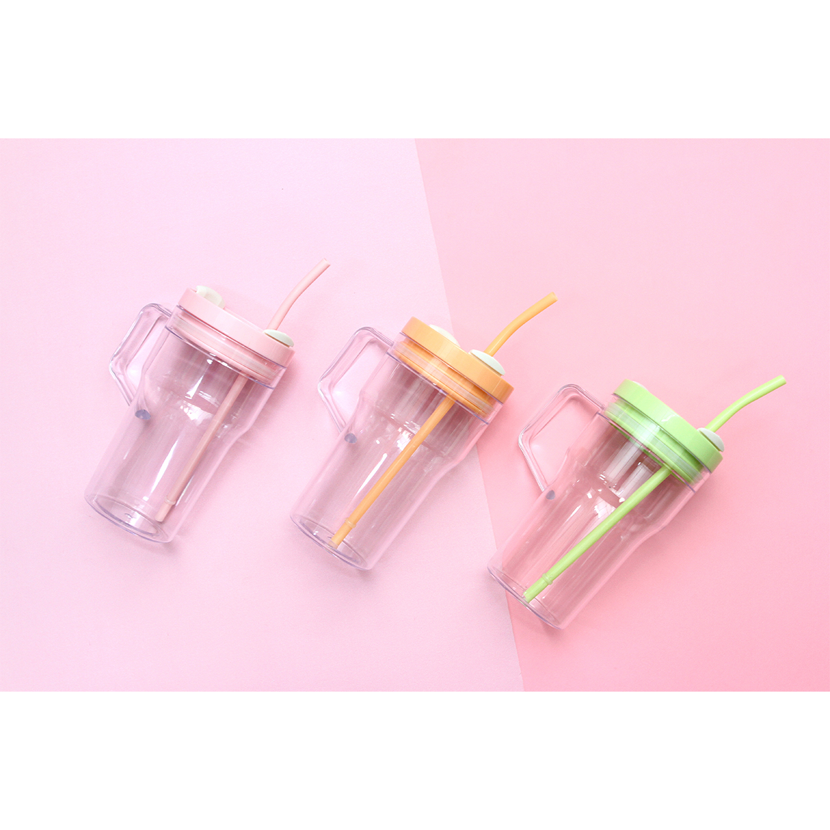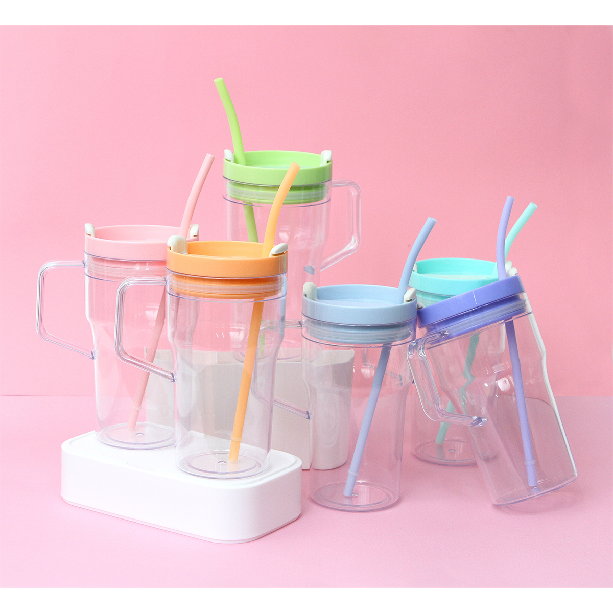Vaso fabricado de acrinonitrilo estireno de color transparente, este material es conocido por una mejor resistencia térmica. Incluye una tapa y popote de colores sólidos brillantes, fabricados en polipropileno. Tiene una capacidad de 760 ml.