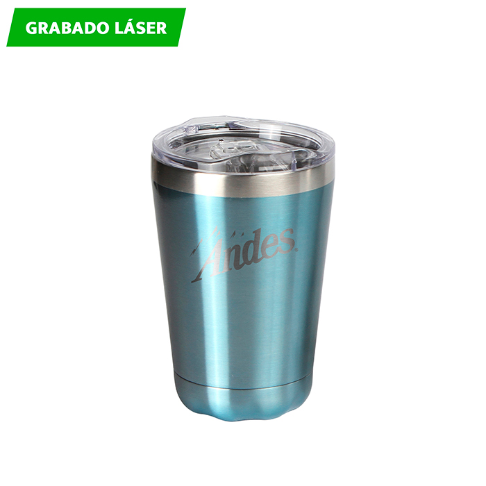 Vaso de acero inoxidable doble pared con tapa transparente de plástico deslizable, fabricado en materiales de grado alimenticio, mantiene bebidas frías o calientes por un largo tiempo, no usar en microondas, capacidad de 266 ml (9 oz). Incluye caja de cartón individual.