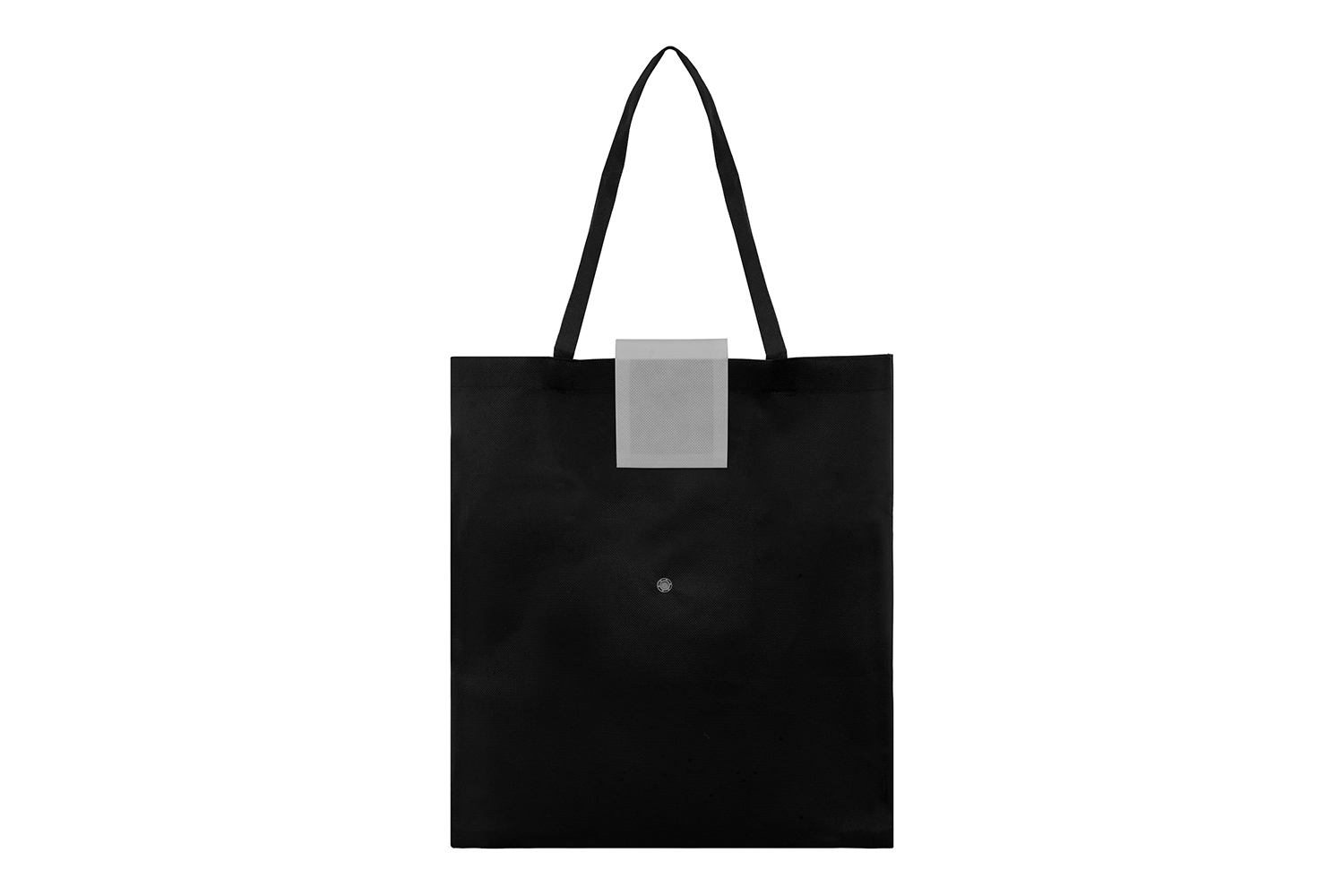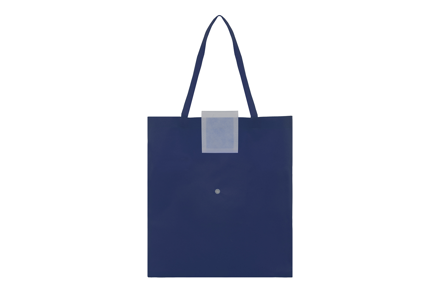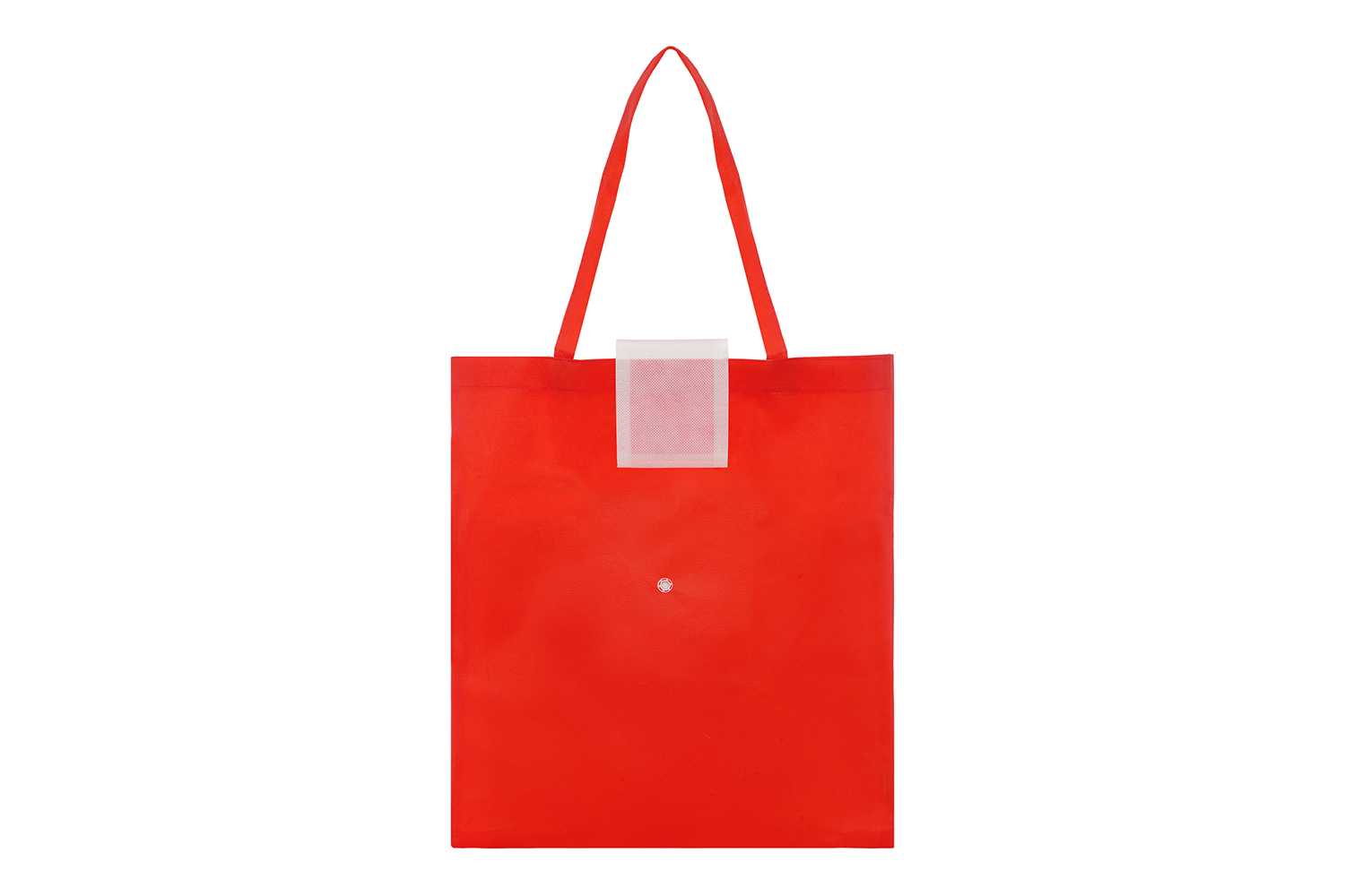 13 x 11 cm. (cerrado) 40 x 34,5 cm. (abierto). Non woven. Bolsa ecológica, posee una solapa color blanco con boton que permite compactar la bolsa.