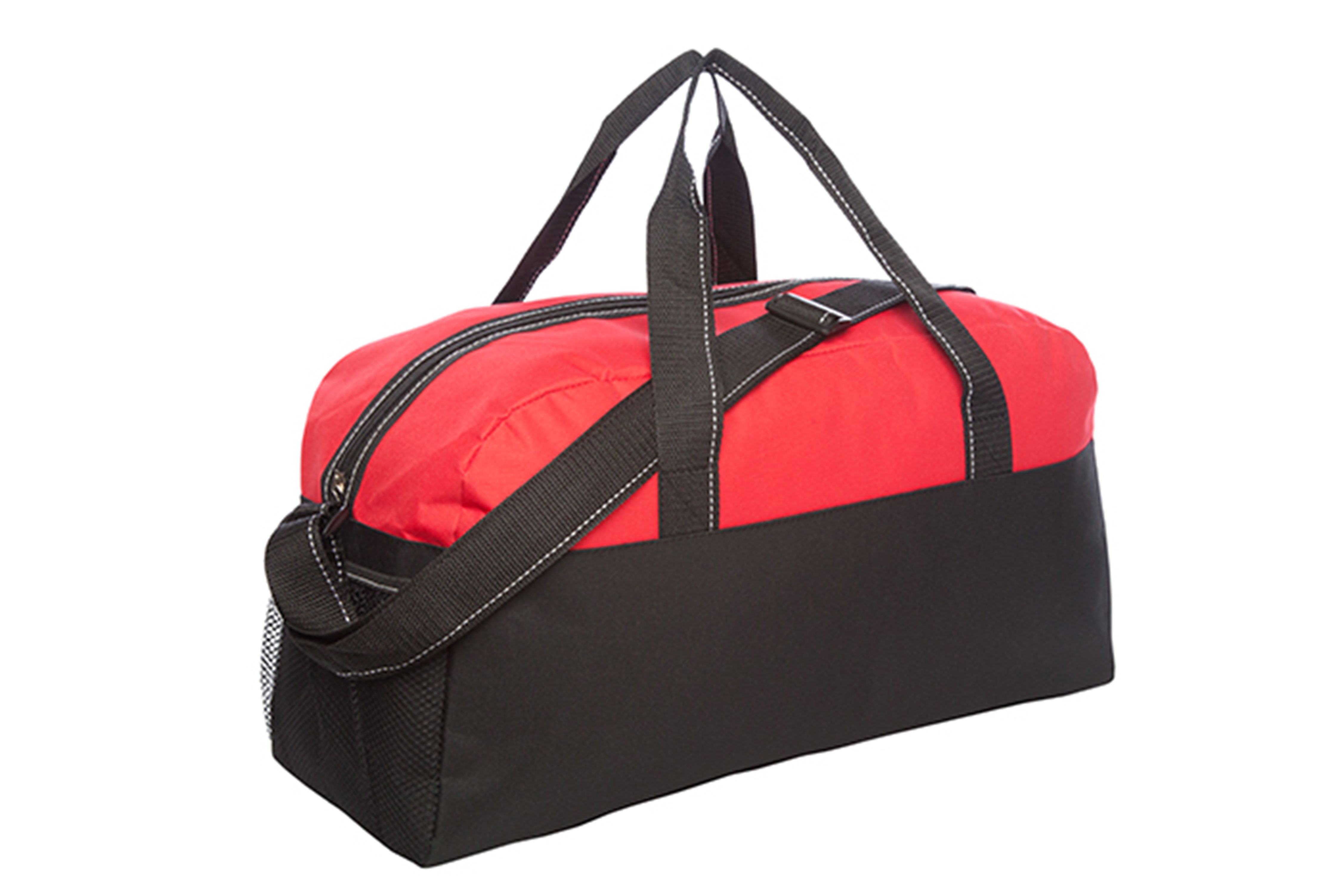Capacidad 23 litros aprox. Polyester 300d. Bolso con bolsillos de redes en los laterales. Dos manijas, correa y cierre principal con vivos blancos.