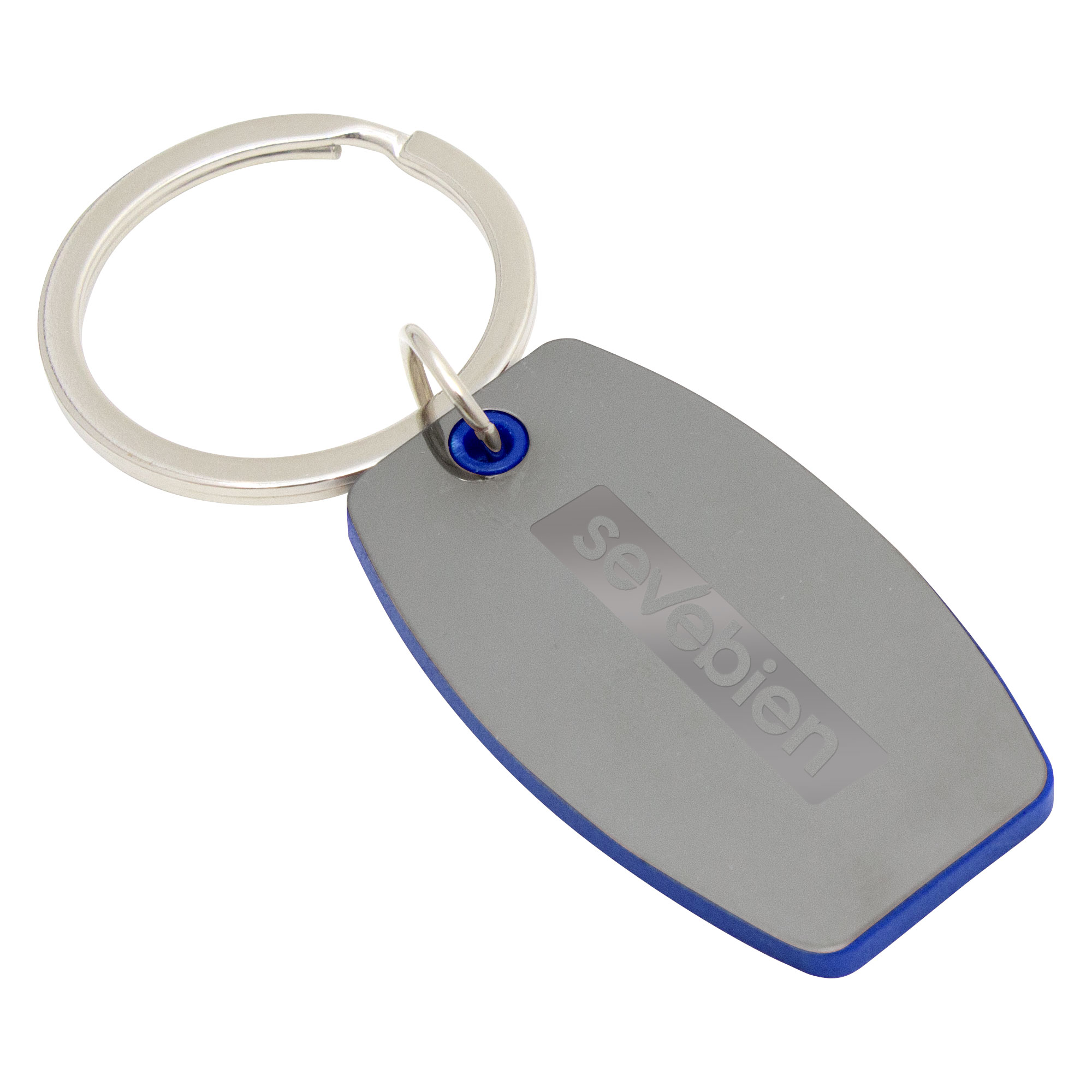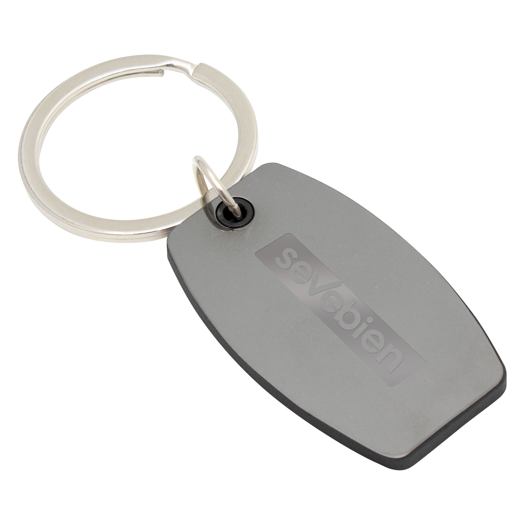Refleja distinciónLlavero con forma ovalada. Estructura plástica de color con apliques de acero color gris gun de cada lado. Acabado brillante.Medidas: 5 x 3 x 0,35 cm. LLavero de Ø 3,5 cm x 0,2 cm. Materiales: Hierro, ABS y Acero.