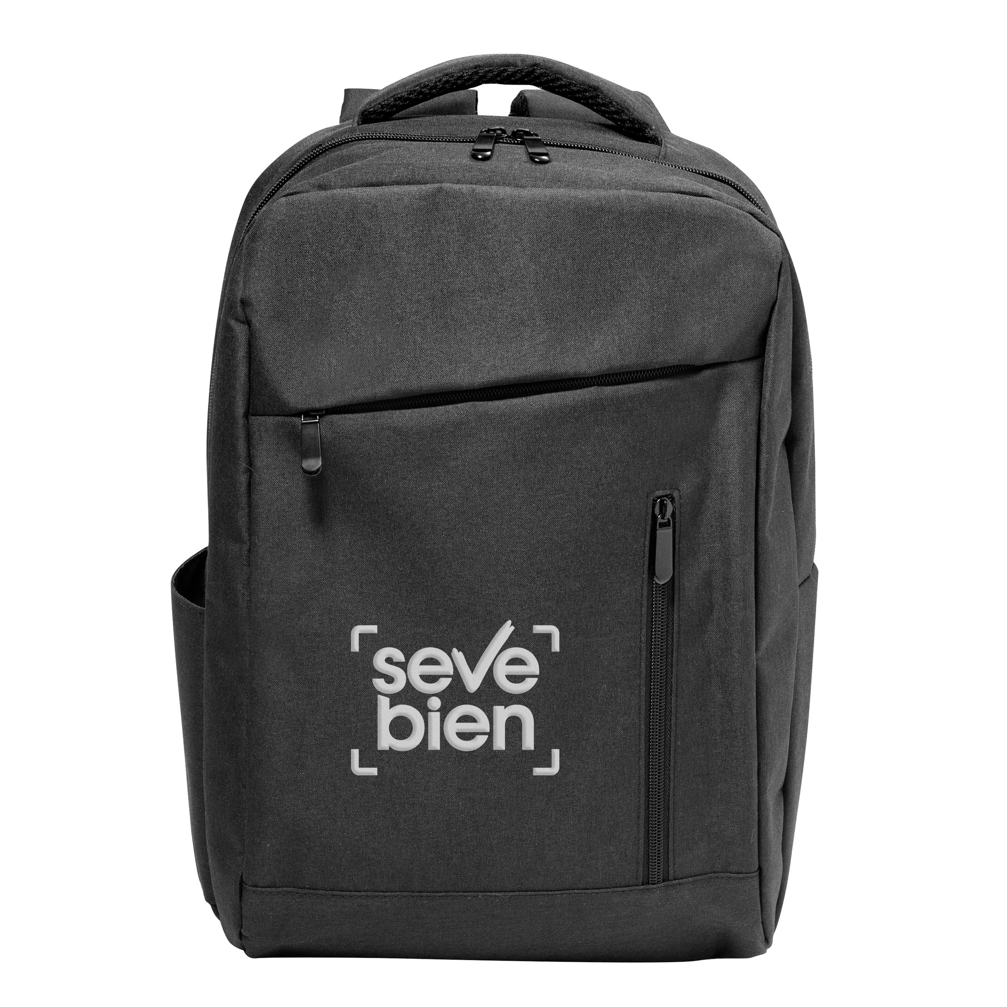 28 x 42 x 12 cm. Capacidad 11 litros. Poliester 300D / PVC Wulong. Forro interior poliéster 210 D. Mochila portanotebook hasta 15. Compartimento principal con bolsillo para notebook acolchado y bolsillo organizador. Frente con dos bolsillos, uno vertical y otro horizontal. Bolsillo lateral izquierdo. Asa superior, correas y respaldo acolchados. Correas ajustables. Tira para sujetar la mochila en la manija extensible de un equipaje de mano. Tiradores de cierres metálicos color negro mate.