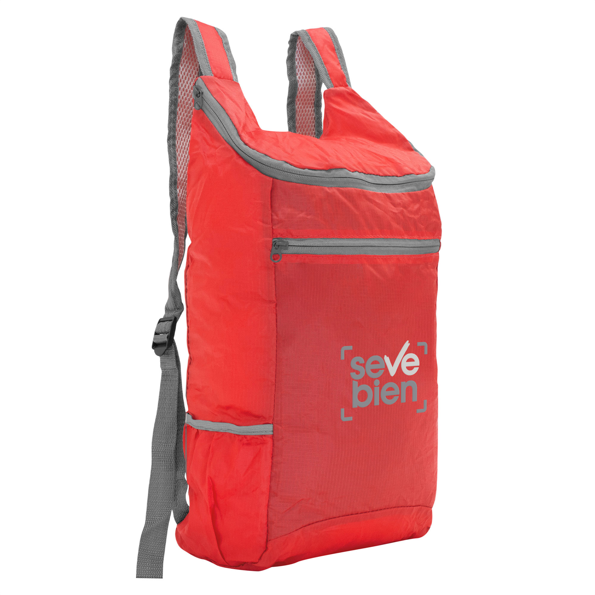26 x 43 x 12 cm. (abierta). 13,5 x 18,5 x 7 cm (cerrada). Capacidad 13 litros. Ripstop 210T (Tela ligera y resistente, de alta durabilidad y protección antidesgarro). Mochila plegable. Compartimento principal con cierre. Bolsillo lateral elastizado. Bolsillo frontal con cierre horizontal. Cierres metálicos. Correas regulables reforzadas y acolchadas. Se comprime fácilmente en una bolsa pequeña con cierre ajustable.