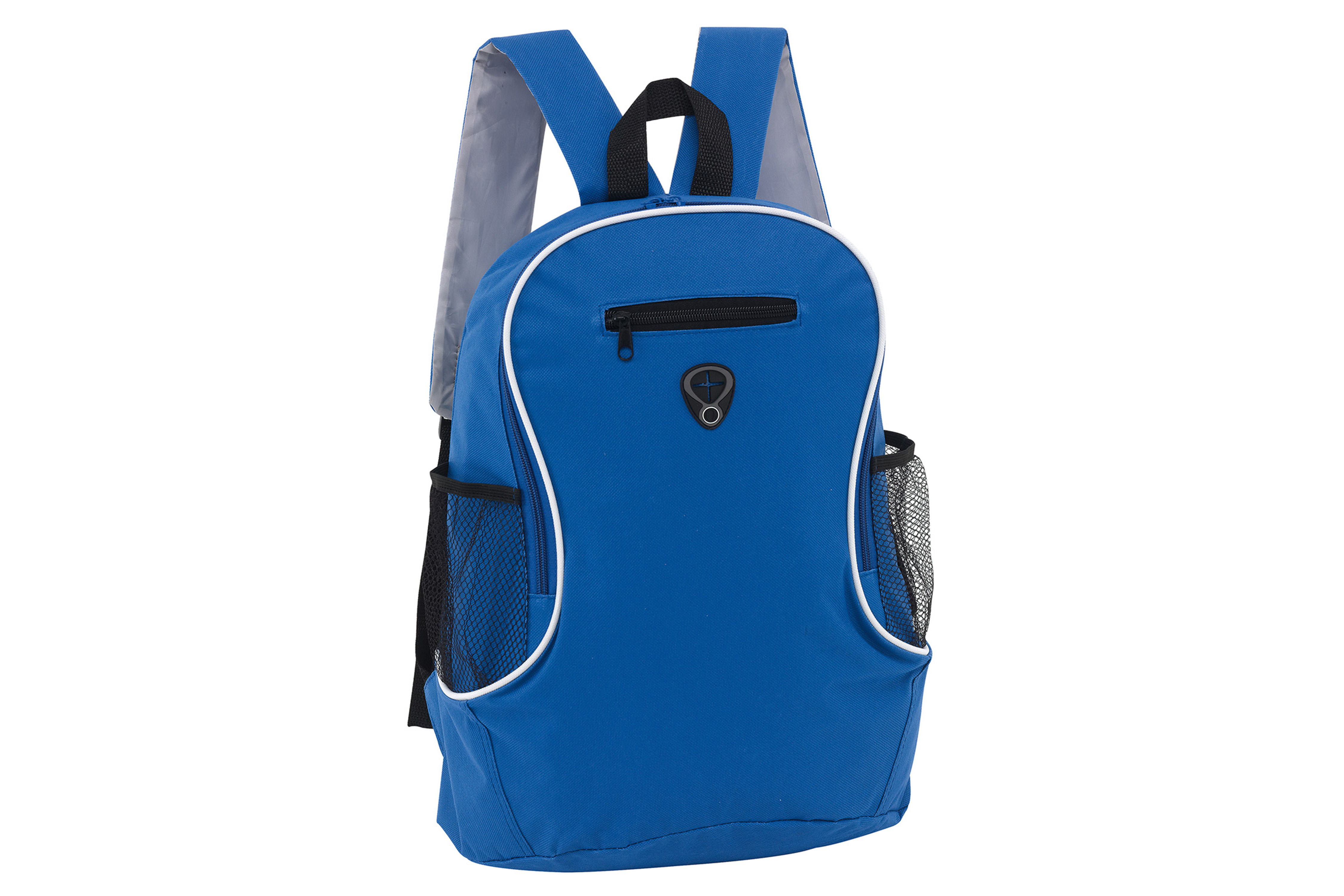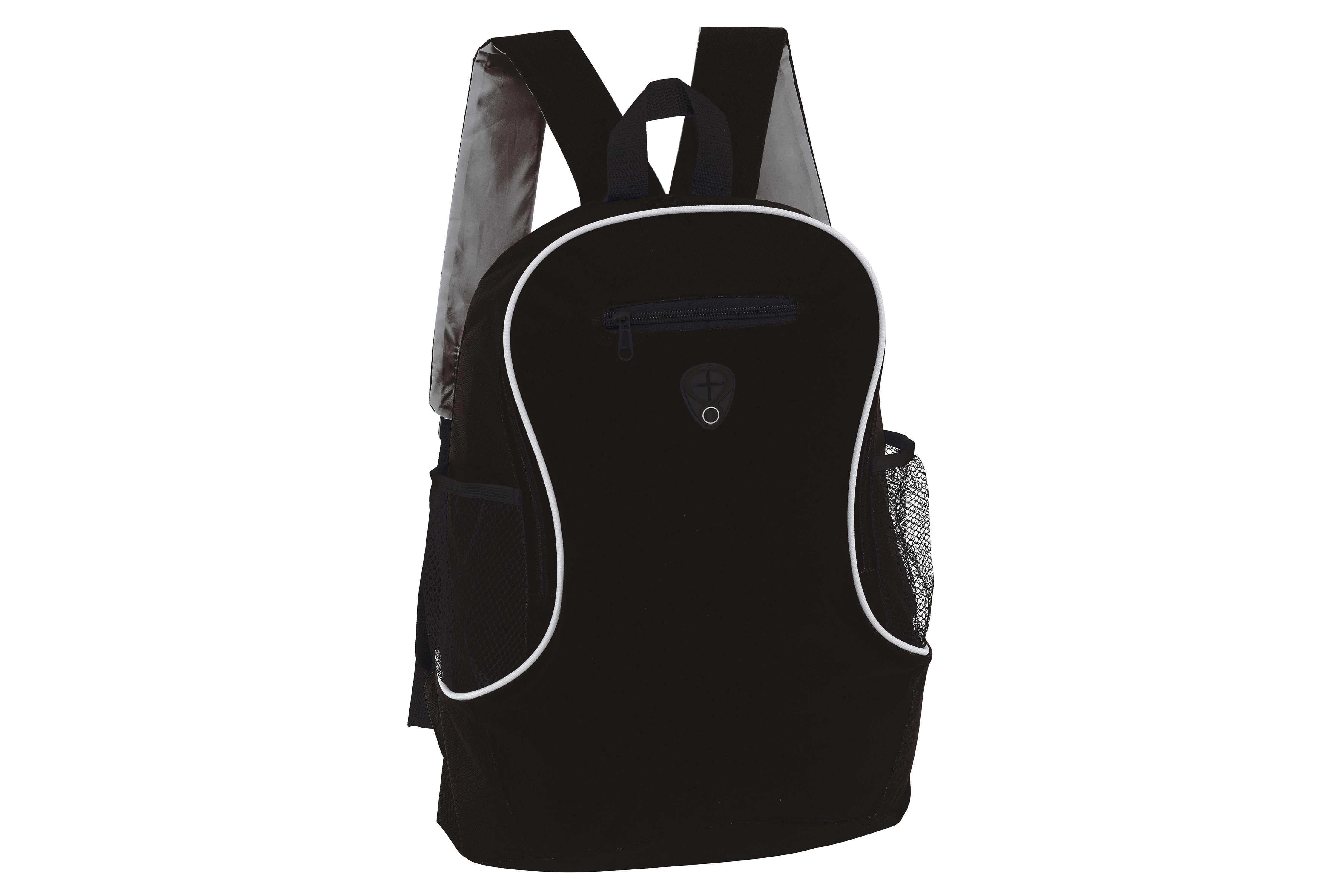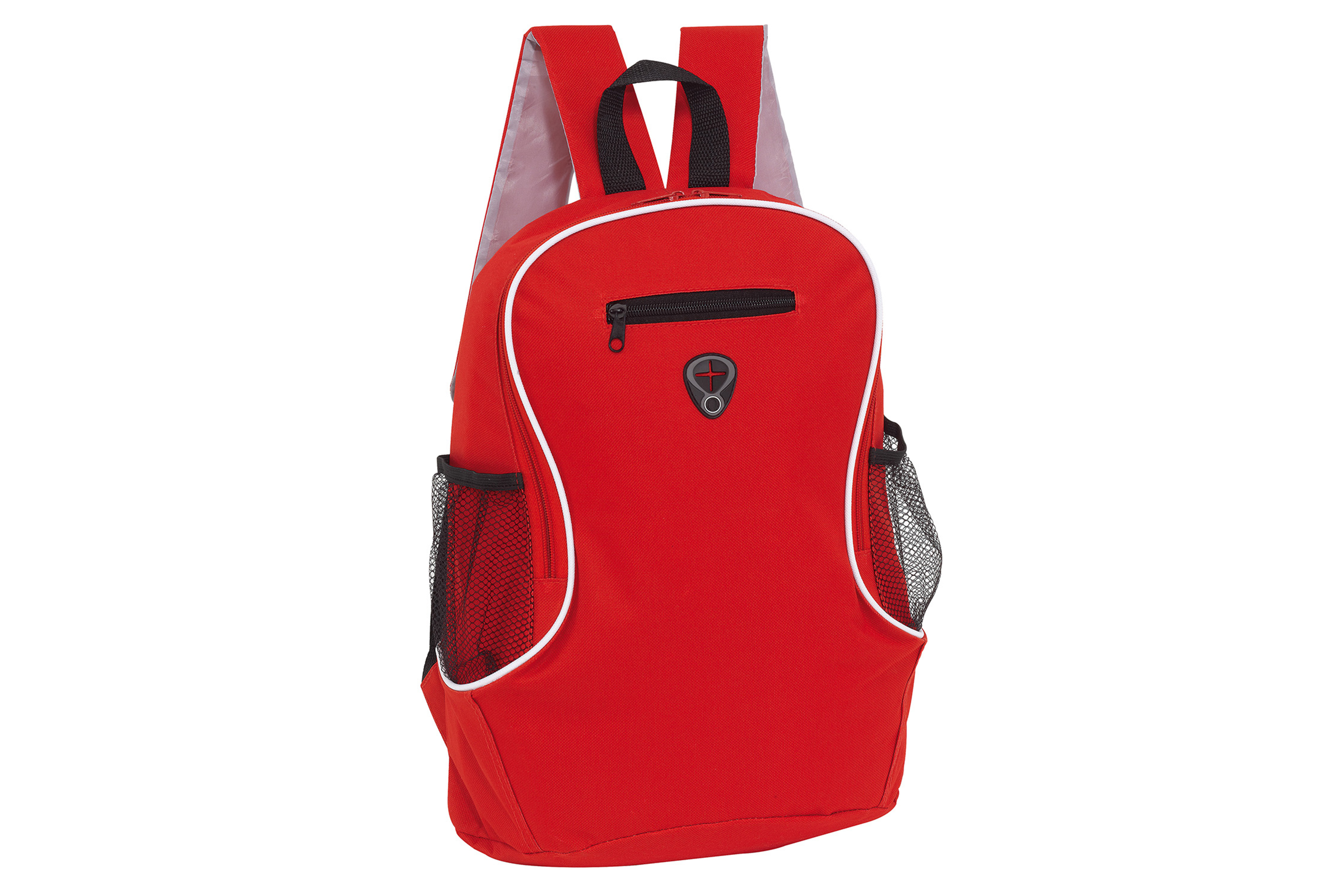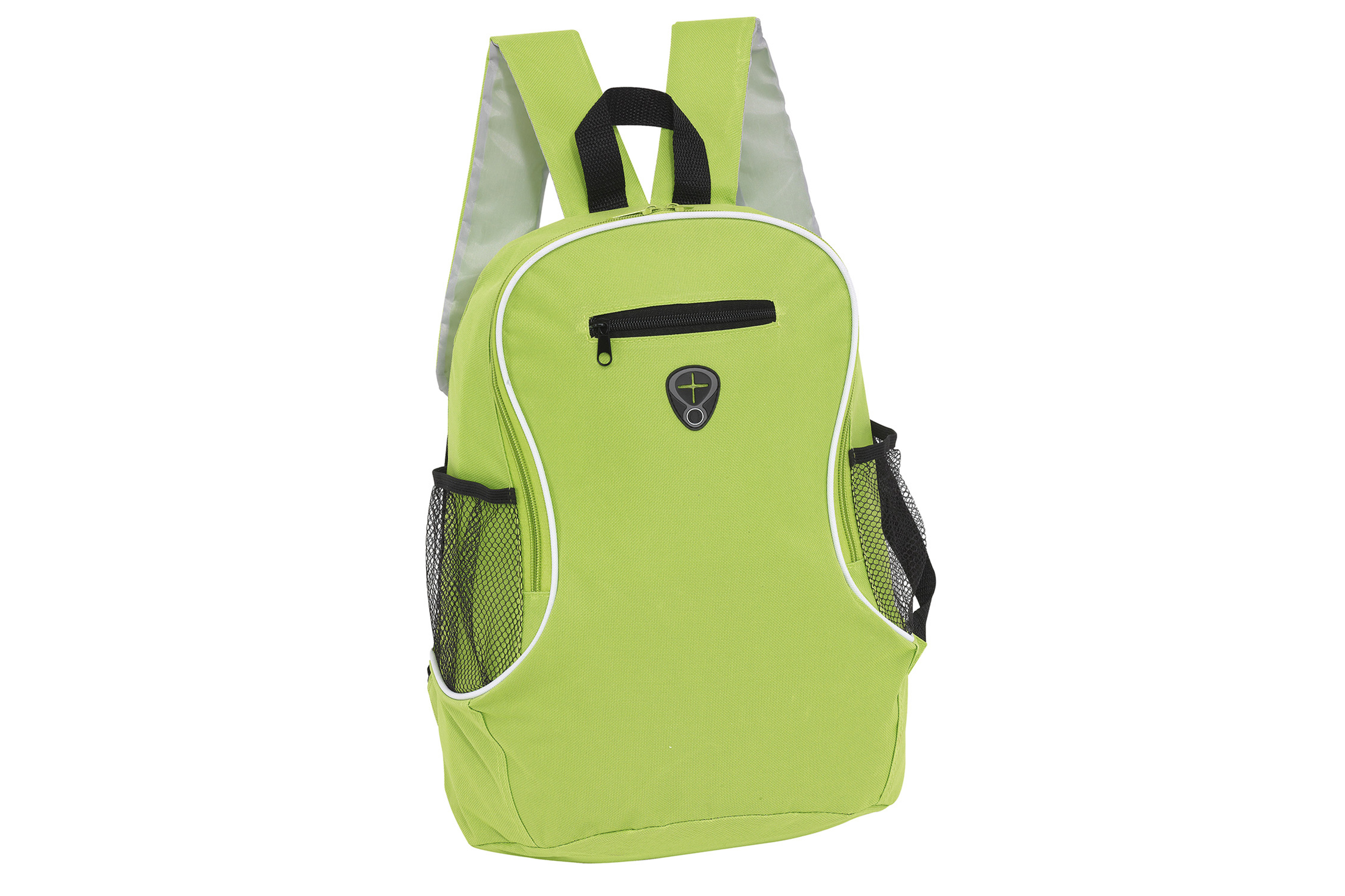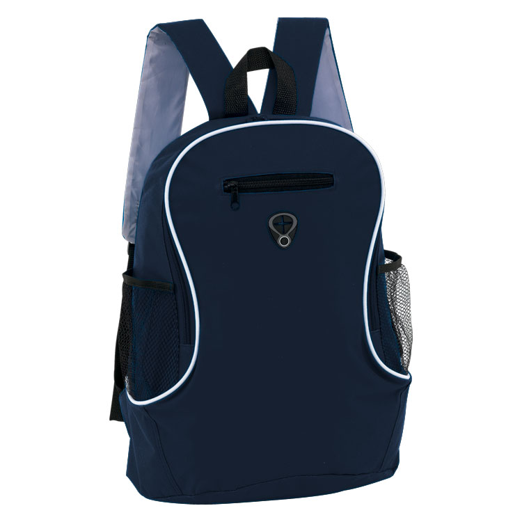 Compartimento principal y pequeña bolsa frontal con cierre. 2 Bolsas laterales de red. Salida para Audifonos.