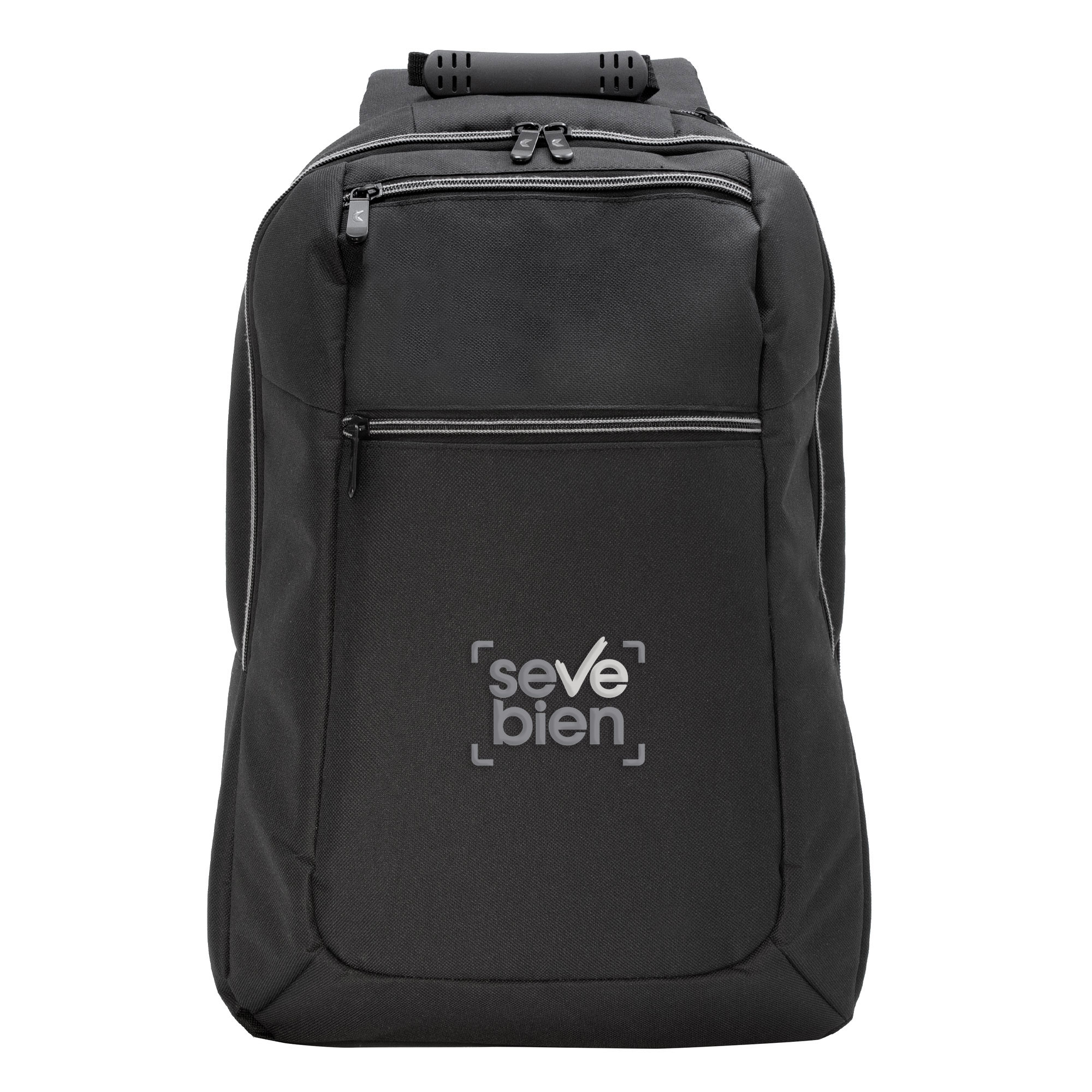 30 x 43 x 12 cm. Capacidad 14 litros. Poliéster 600D, interior poliéster 210D. Mochila portanotebook de 14 pulgadas, con 2 compartimentos principales y 2 bolsillos frontales horizontales. Con asa superior y correas acolchonadas y cierres metálicos, hebillas plásticas. Espalda acolchonada. Tira para sujetar el equipaje.