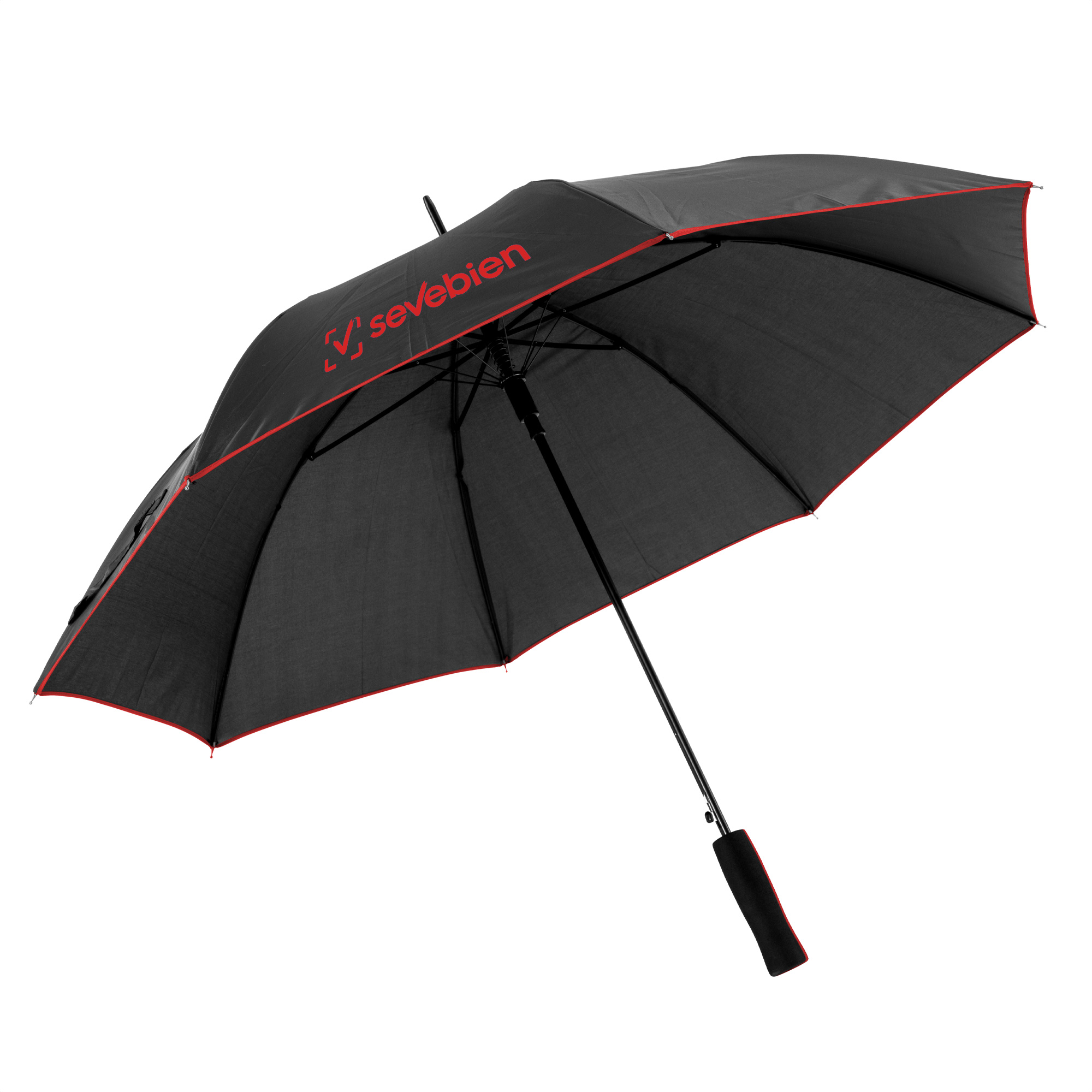 Mantente seco y elegante.Paraguas  APERTURA AUTOMÁTICA Y CIERRE MANUAL. Eje y varillas metálicas. Tela negra con detalle de color. Mango de goma eva de doble color. Botón a presión. Cierre con correa de velcro.Medidas: Ø 105 cm. 8 gajos. Ancho gajo 40 cm. Largo total 83 cm.  Materiales: Poliéster 190T, metal y plástico engomado.