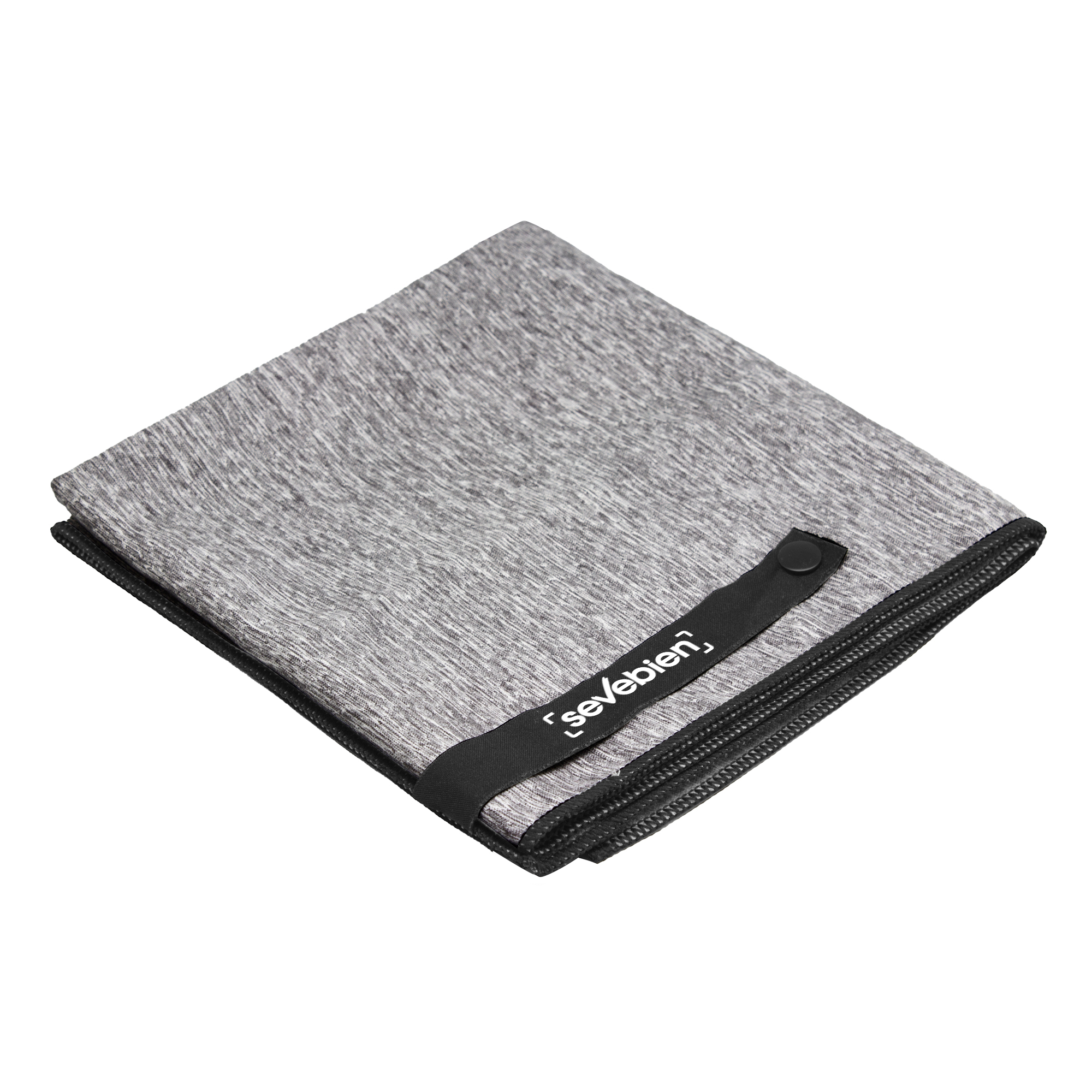 80 x 40 cm. Microfibra. Toalla de microfibra de secado rápido. Cinta negra que permite enrollar la toalla y aplicar logo.
