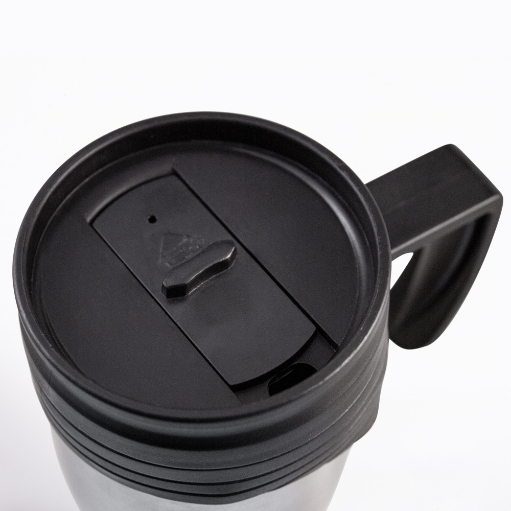 Termo de acero inoxidable y plestico con capacidad de 400ml.