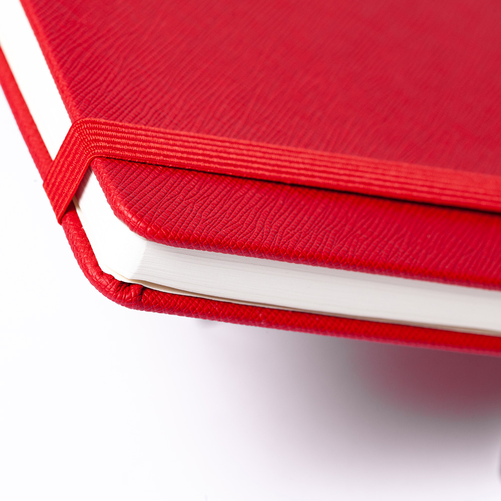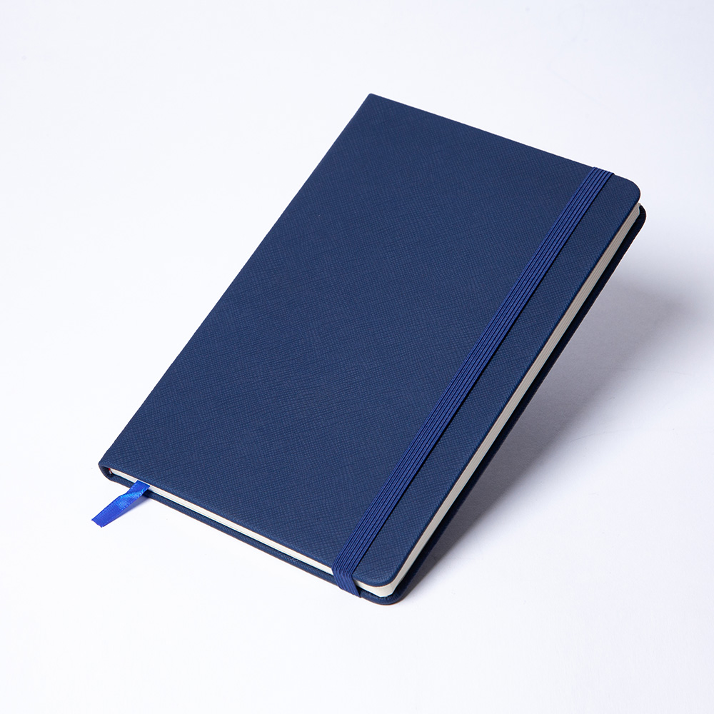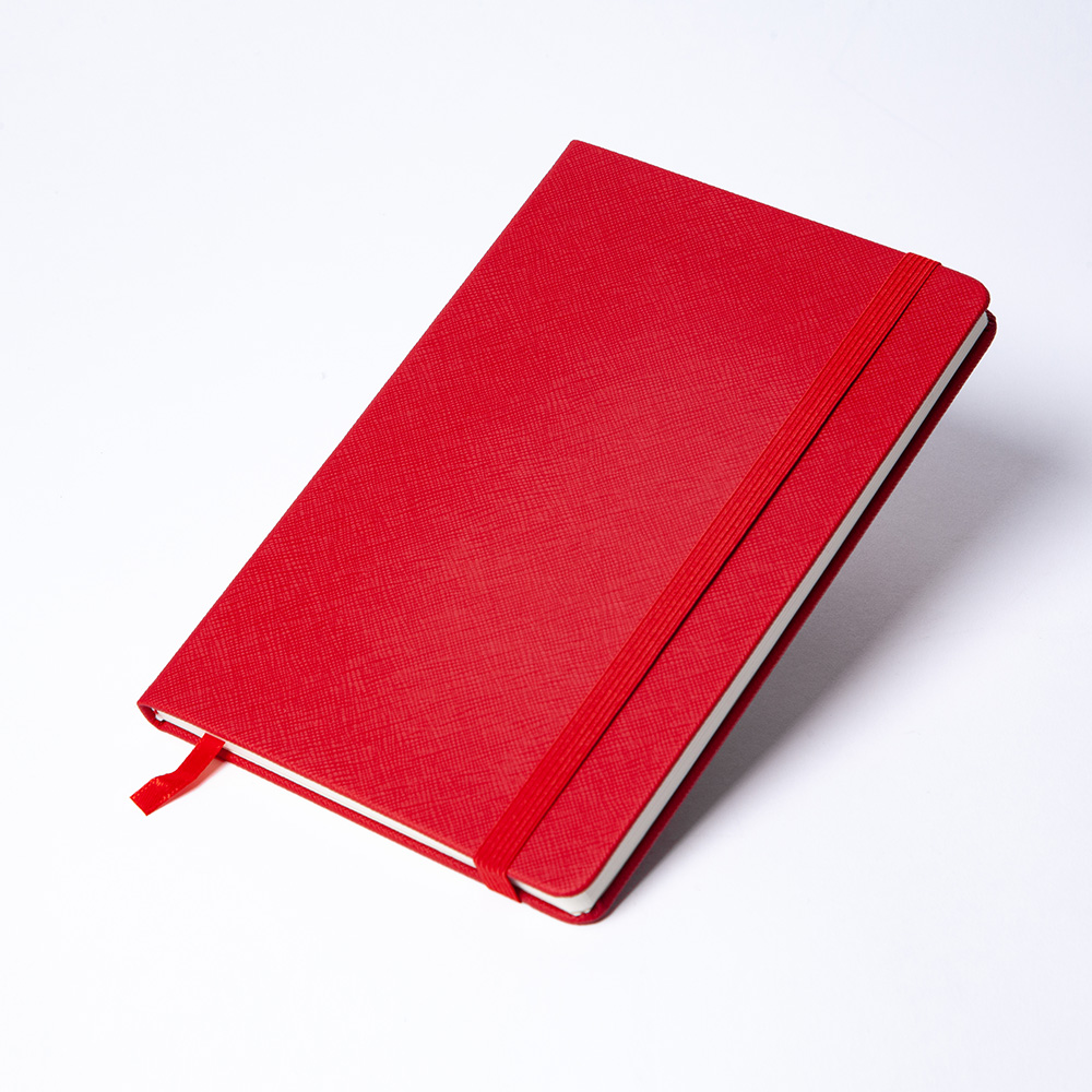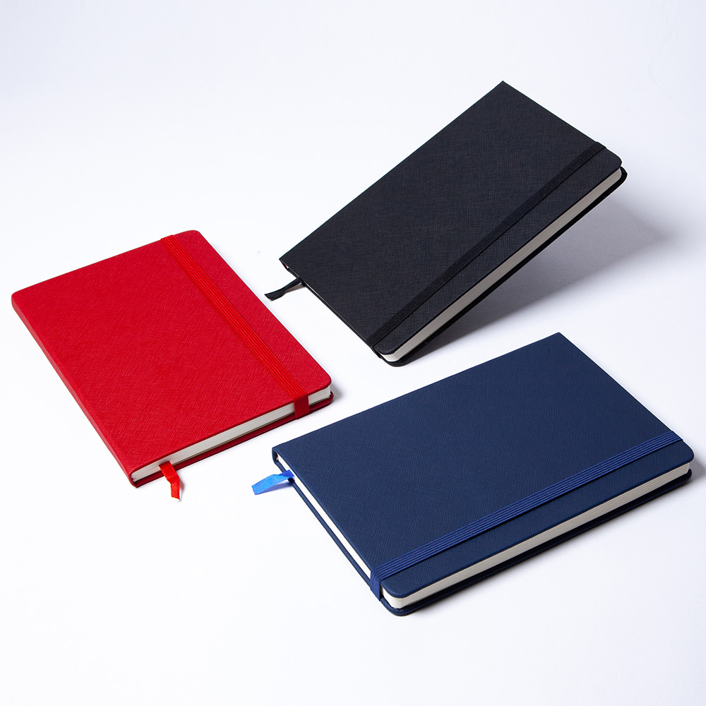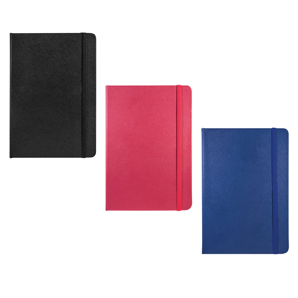 Libreta con cubierta dura de PU texturizado, banda elestica, separador y 96 hojas rayadas. Recomendamos grabar en leser para que su logo destape a color.