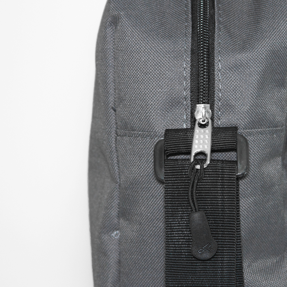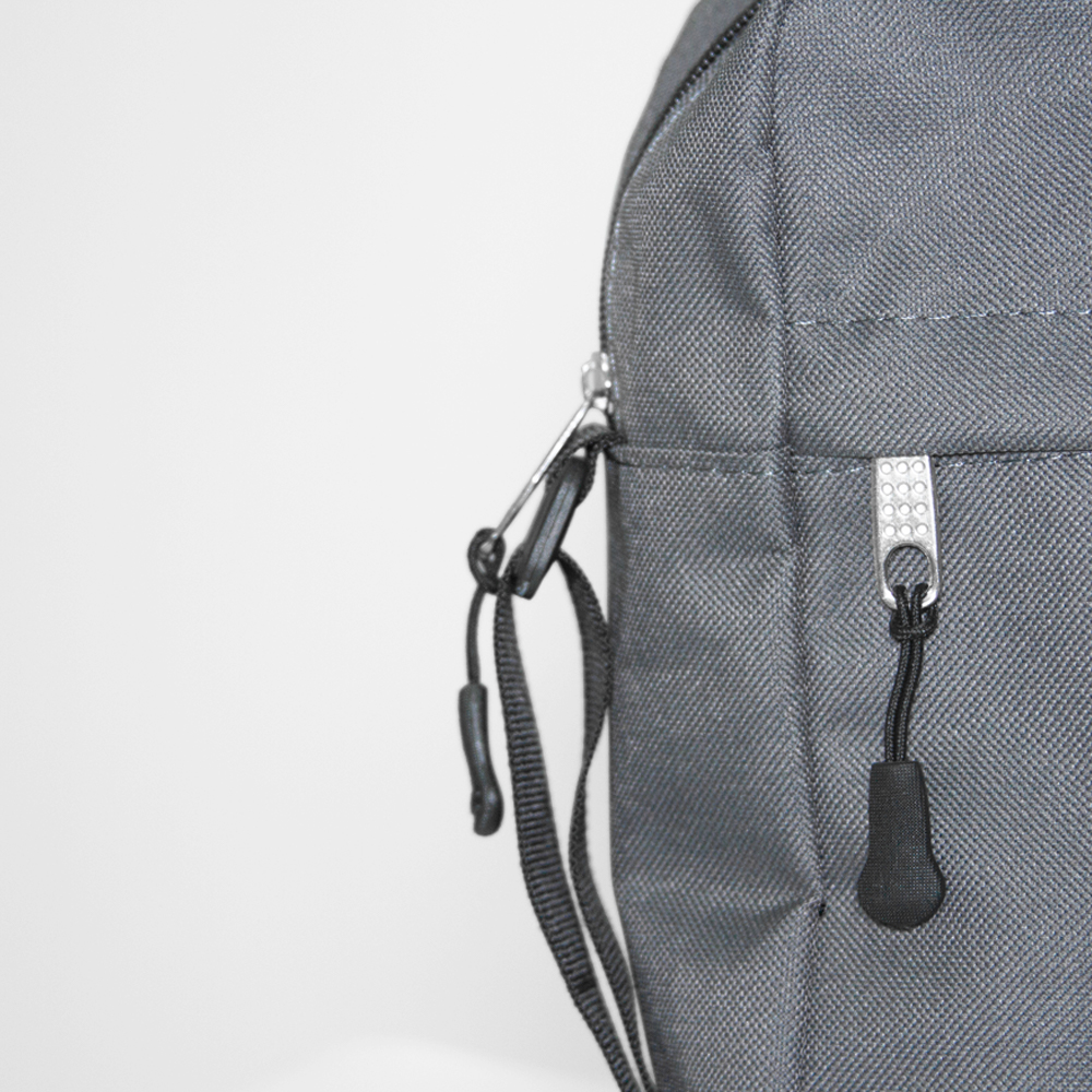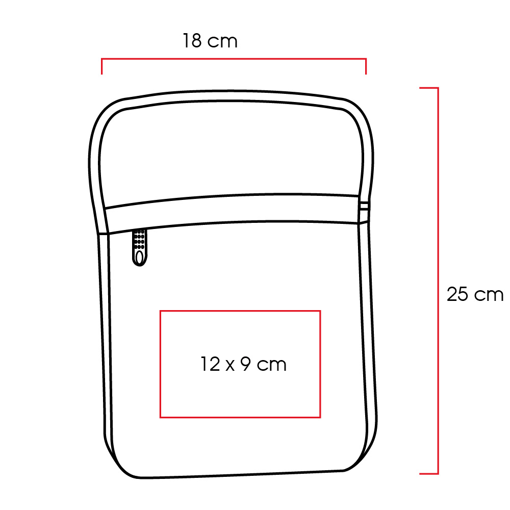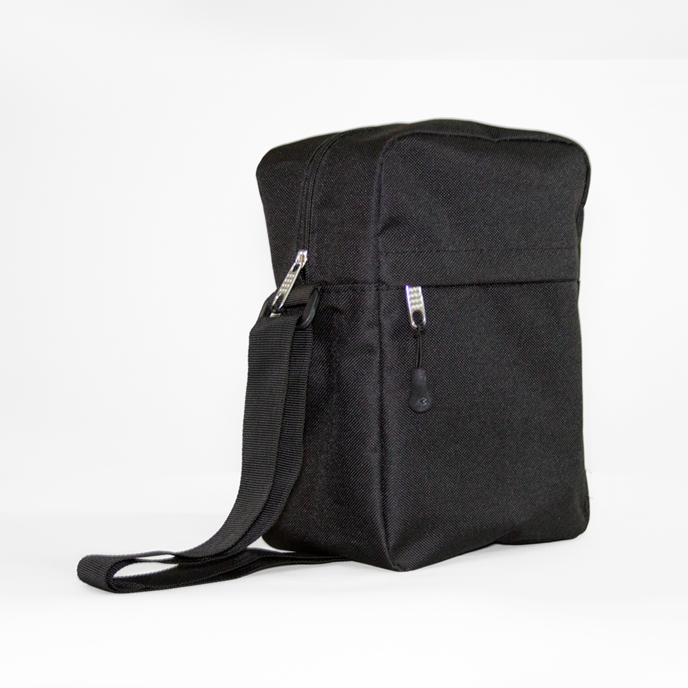 Bolsa bandolera de poliéster con compartimento principal y un compartimento frontal. Incluye correa ajustable.
