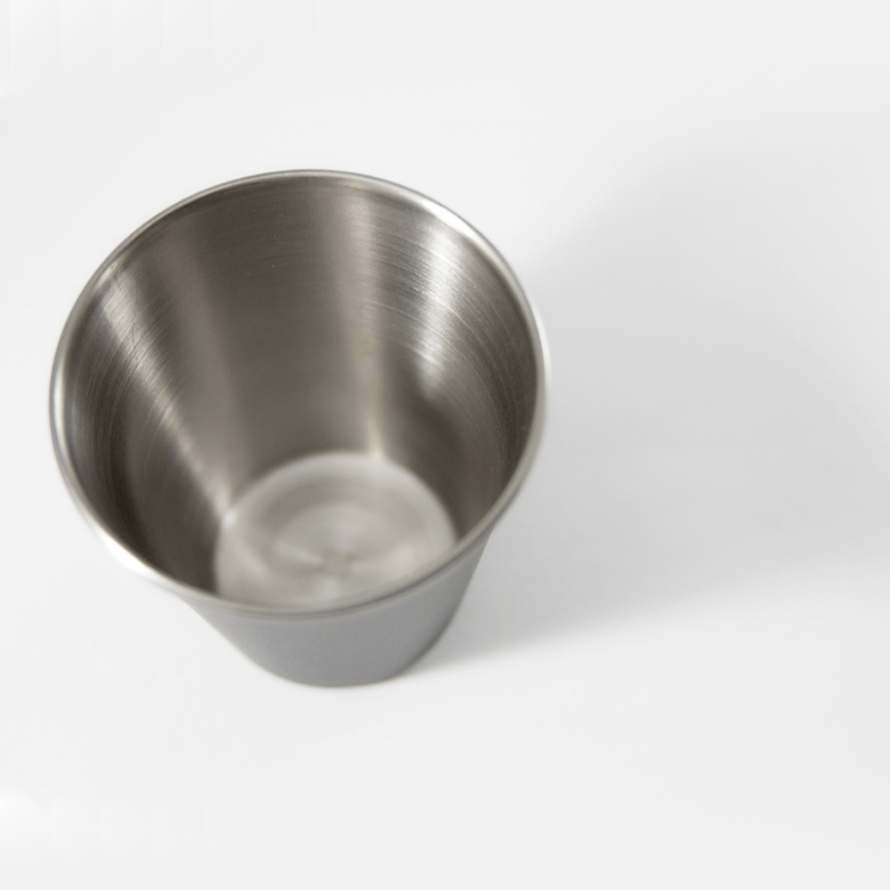 Vaso de acero inoxidable con capacidad de 70 ml.