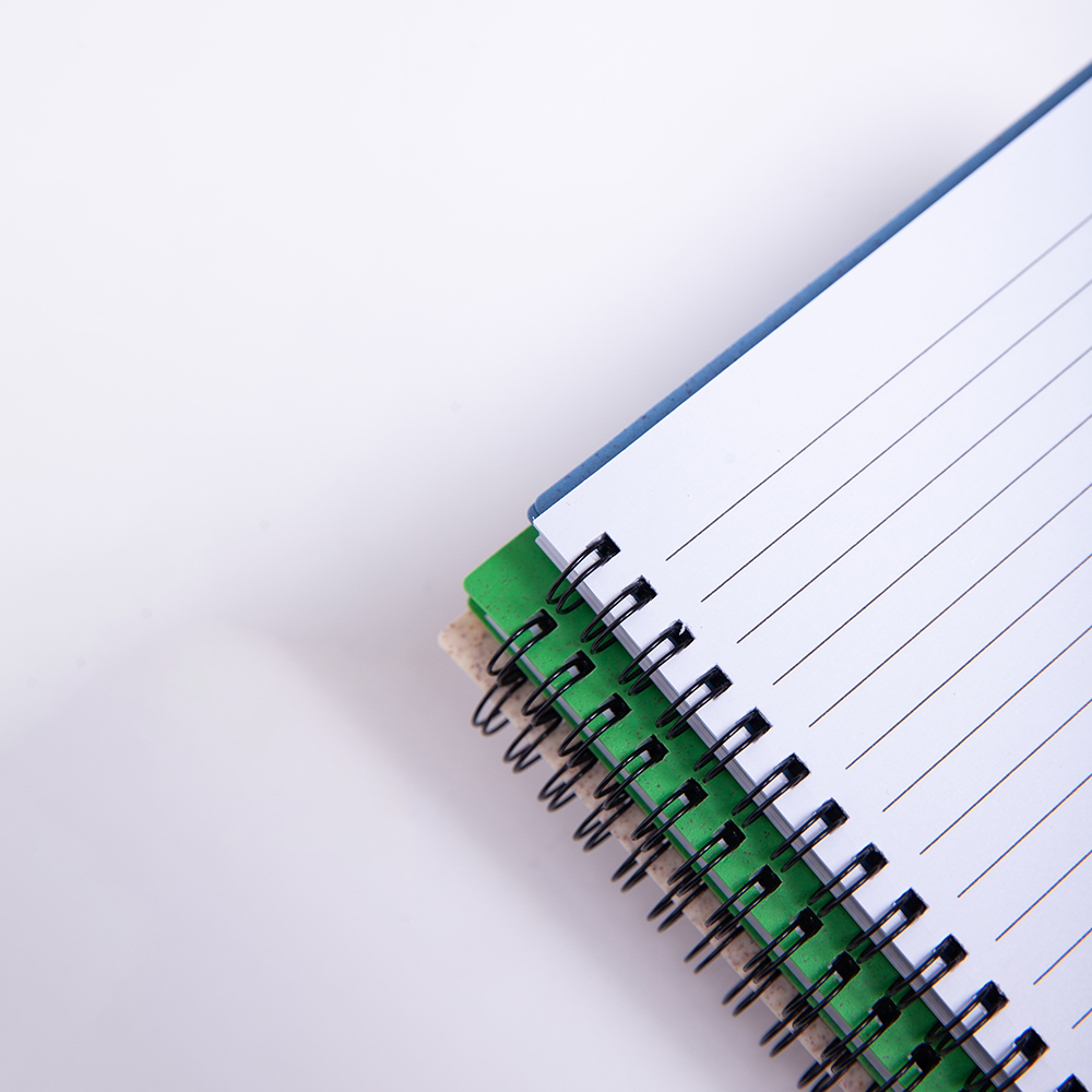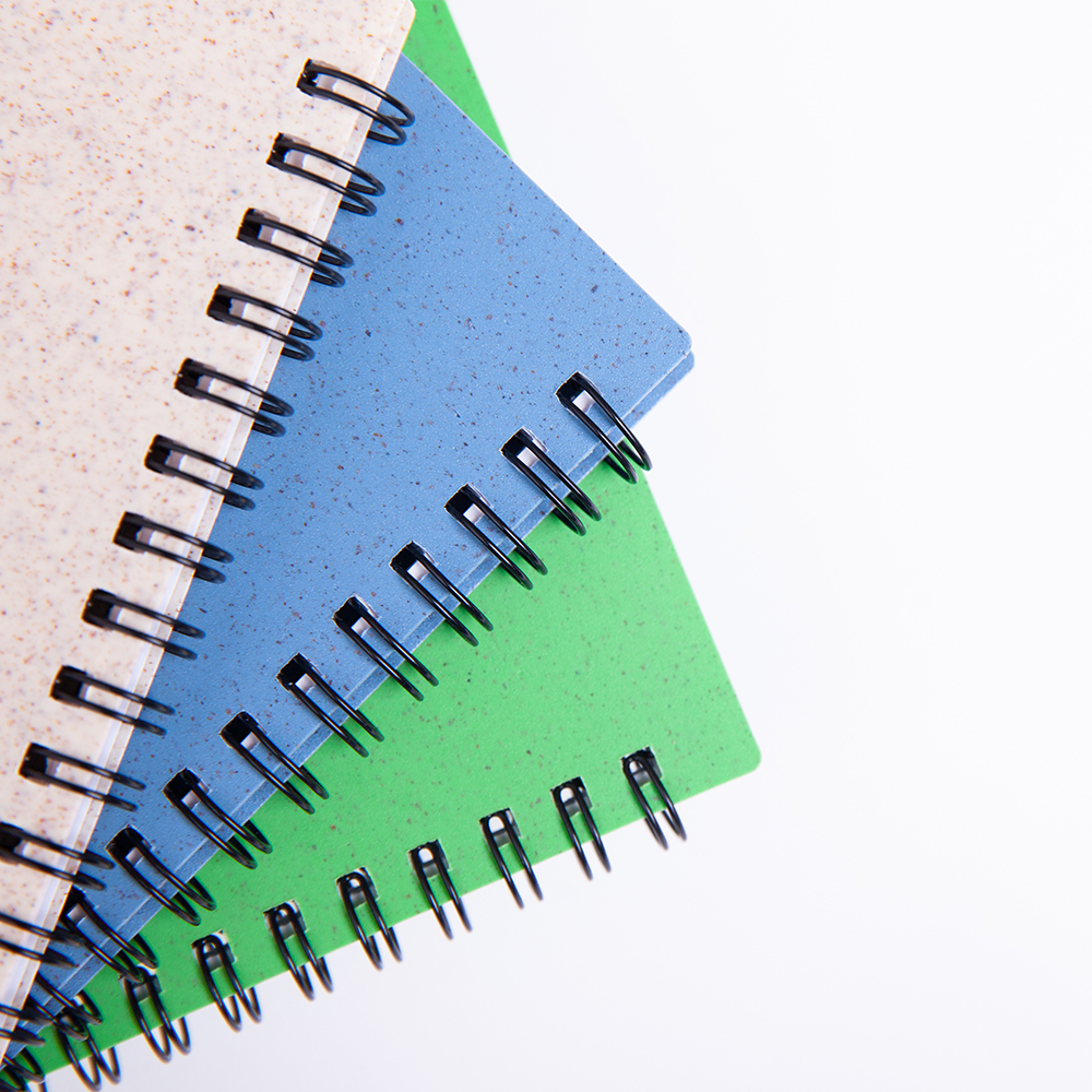 Cuaderno ecológico de cubierta de fibra de trigo, con 70 hojas rayadas y encuadernación espiral.