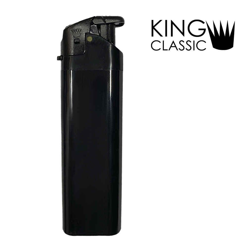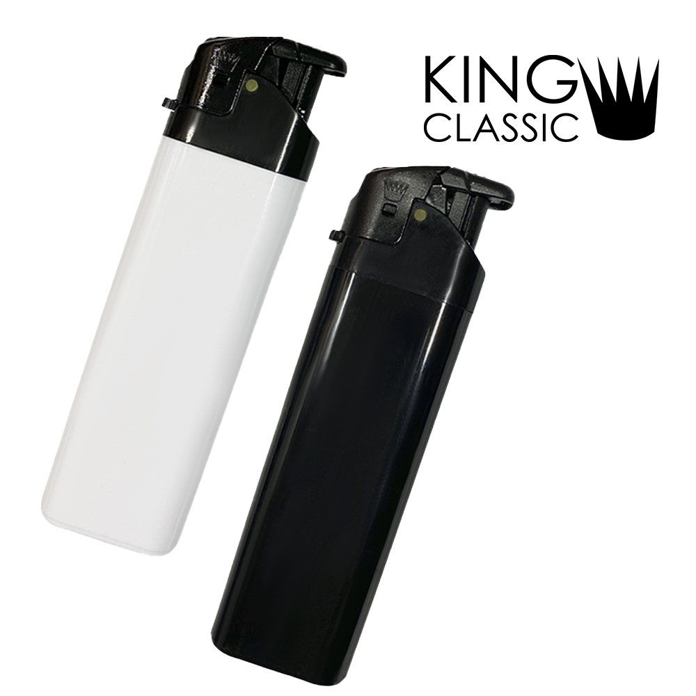 Encendedor de plástico desechable King con sistema de encendido tipo electrónico. VENTA POR CAJA. CONSULTA EXISTENCIAS CON TU EJECUTIVA DE VENTAS.