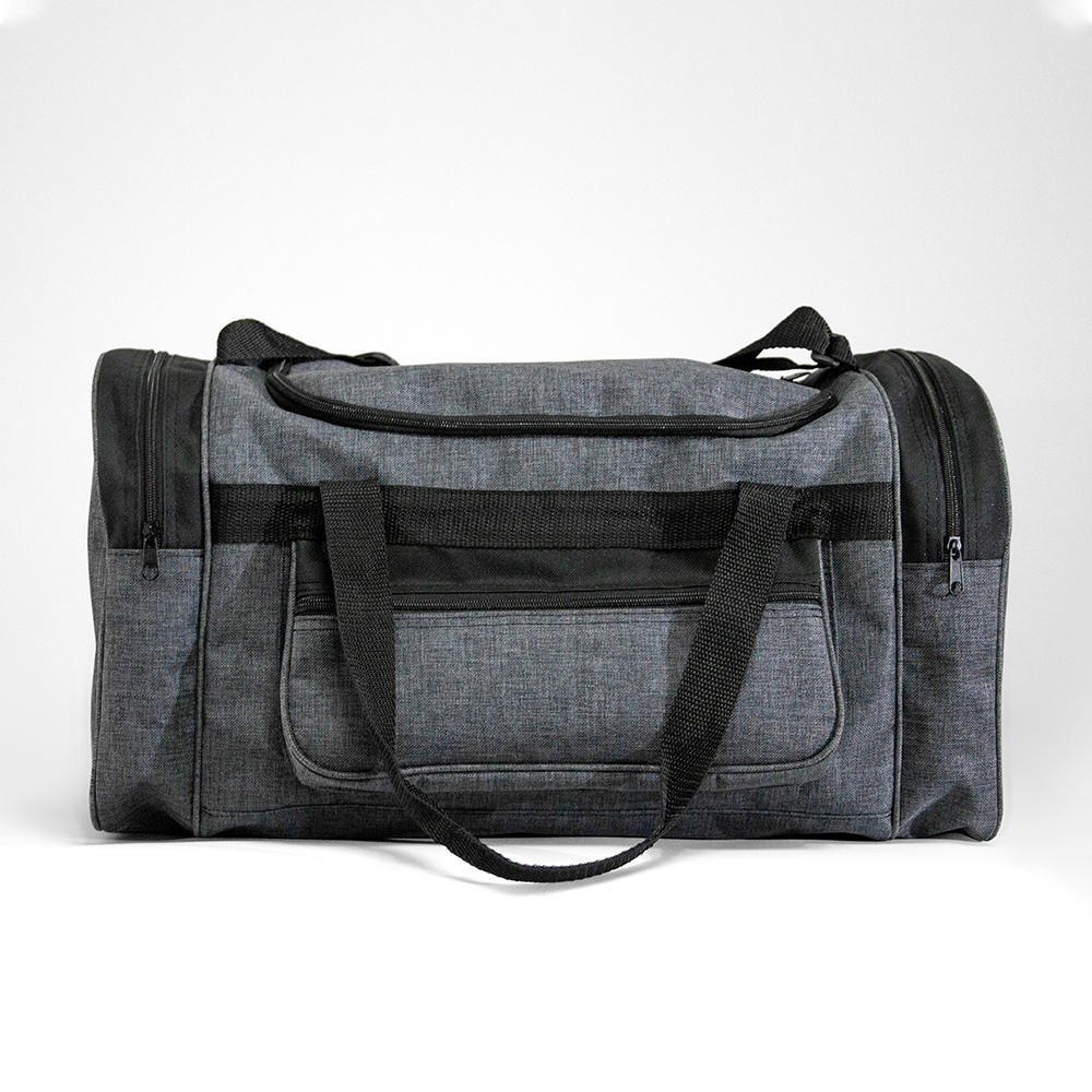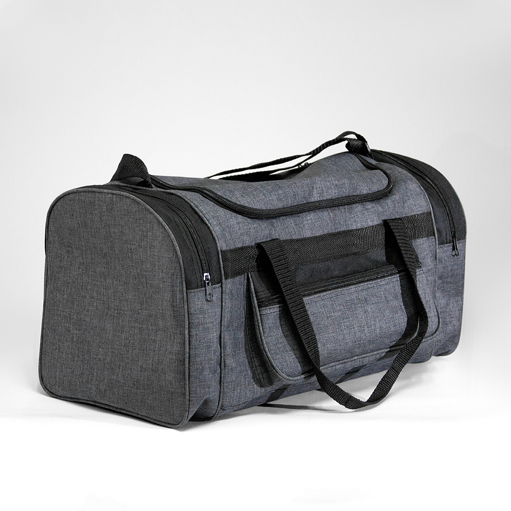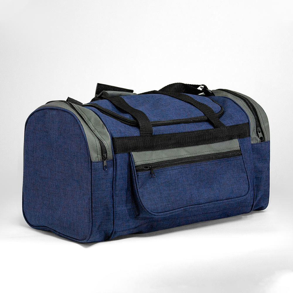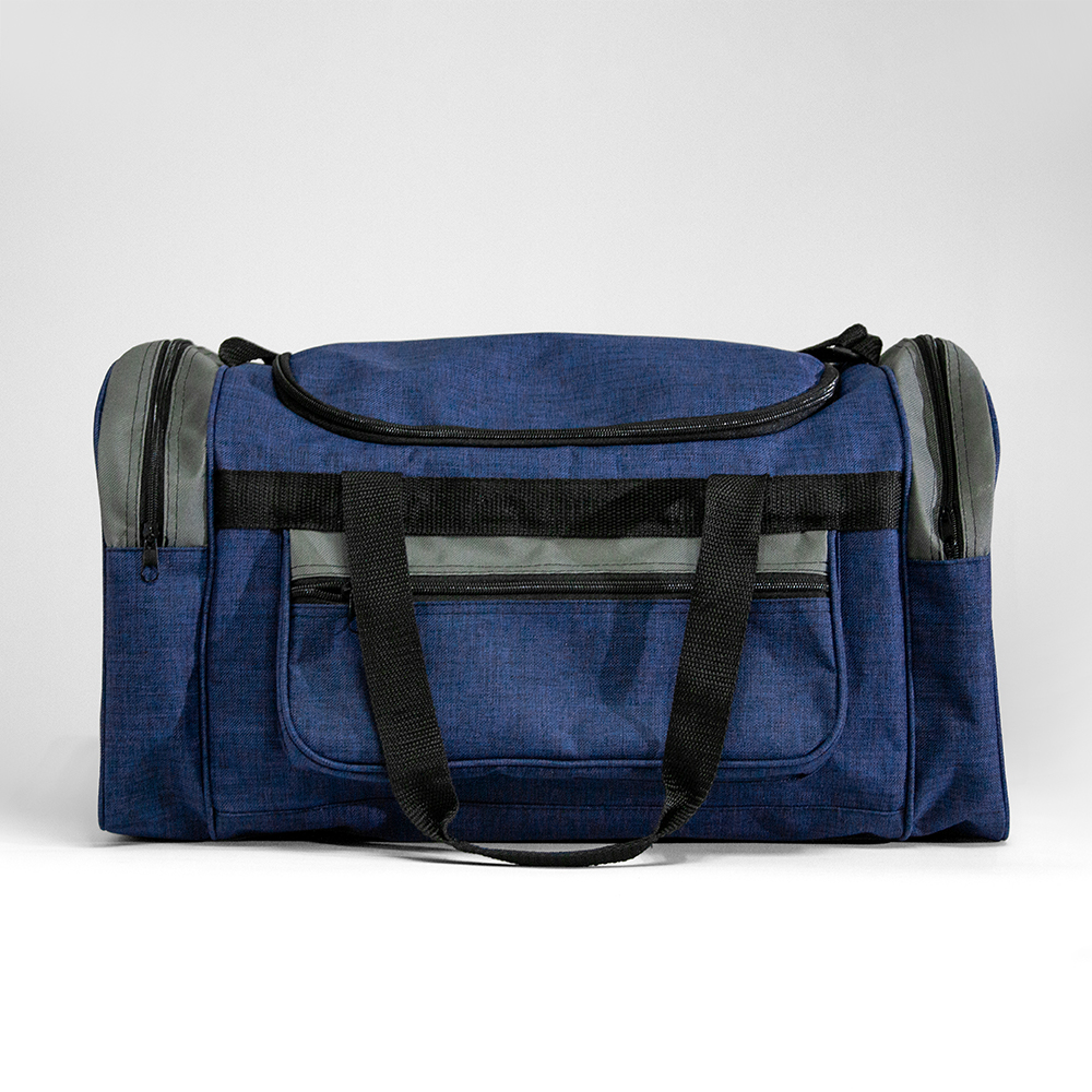 Maleta de poliéster con bolsa frontal y bolsas laterales con cierre. Cuenta con correo ajustables y asas de sujeción.