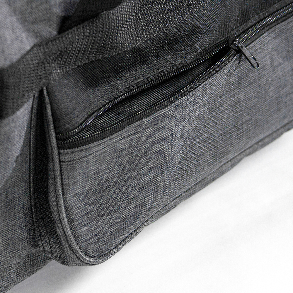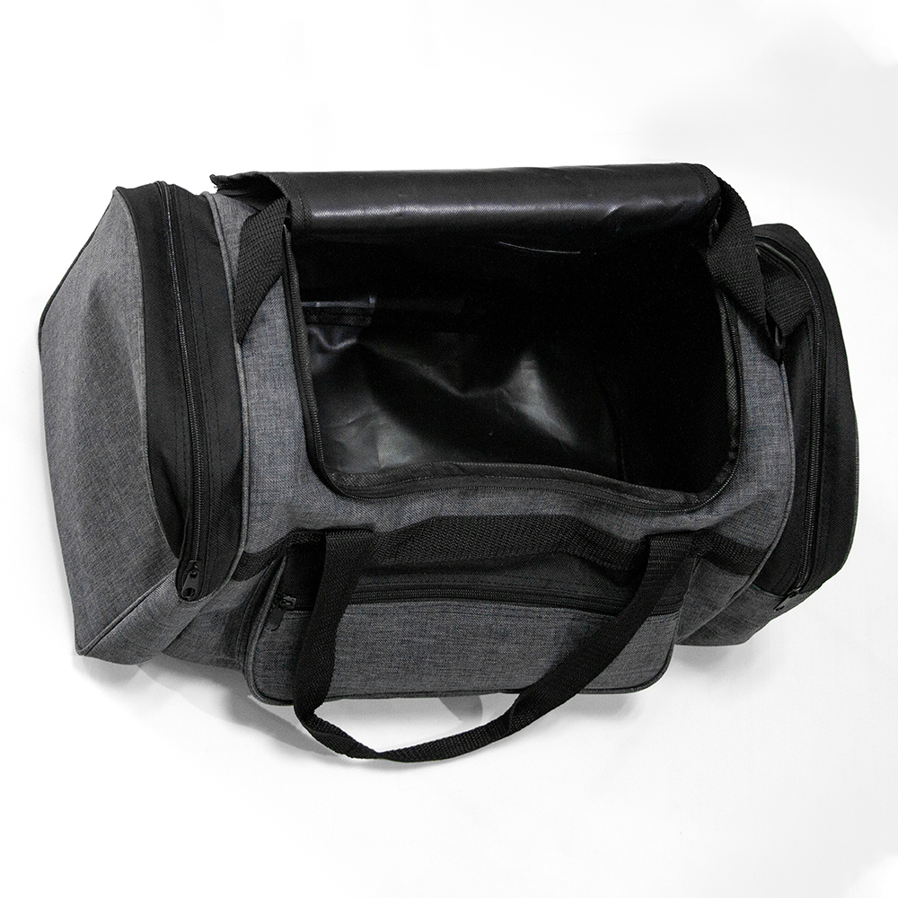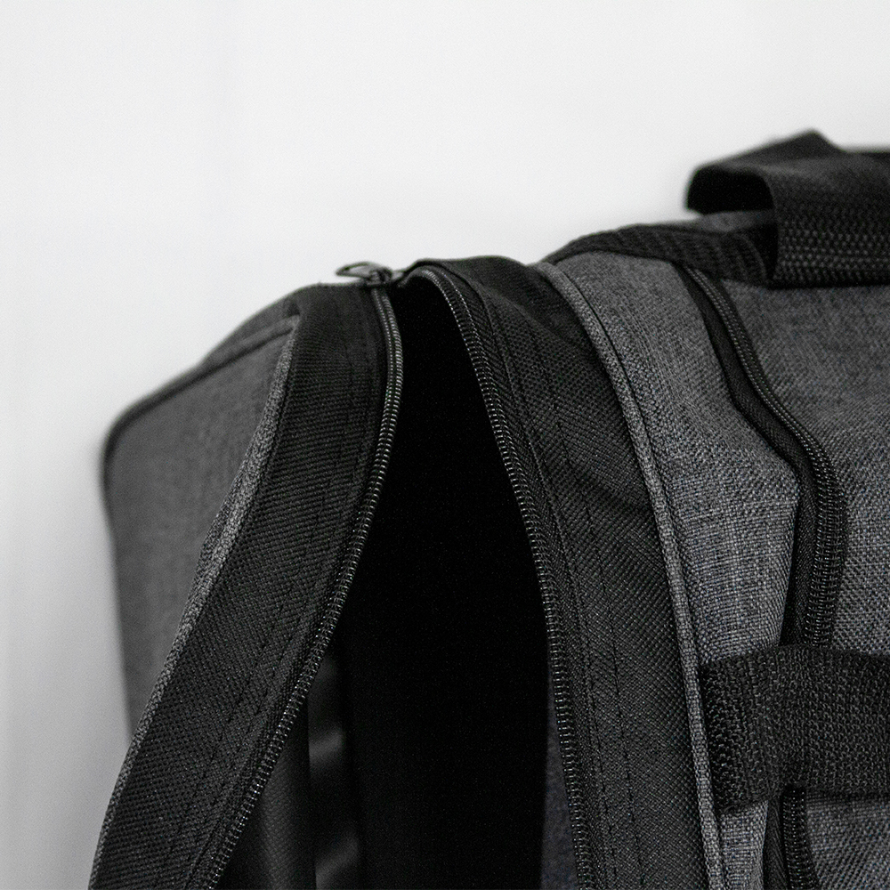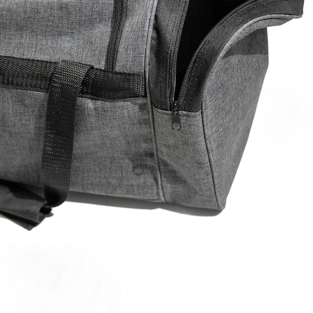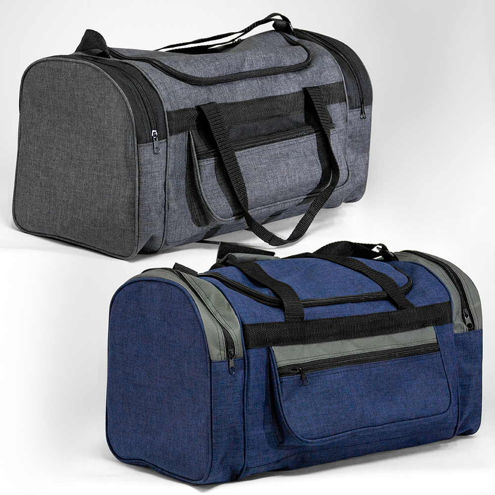 Maleta de poliéster con bolsa frontal y bolsas laterales con cierre. Cuenta con correo ajustables y asas de sujeción.