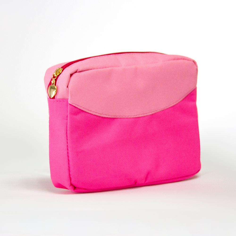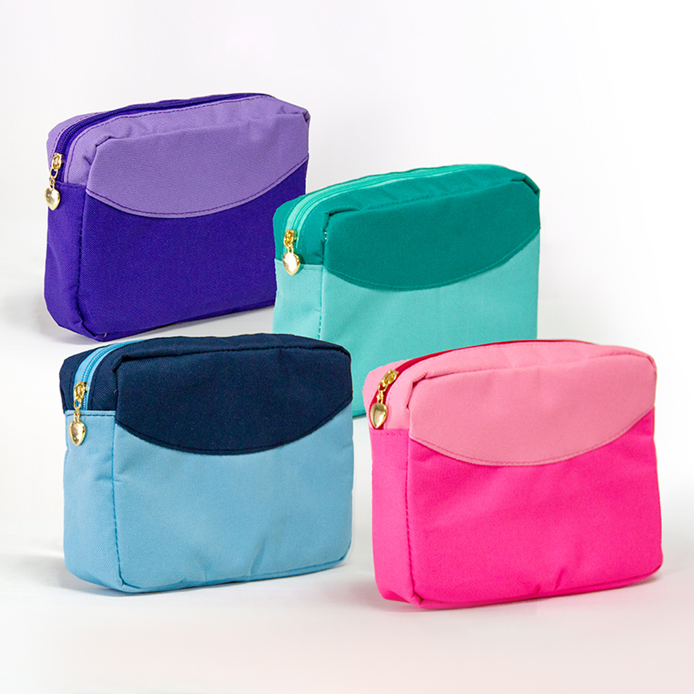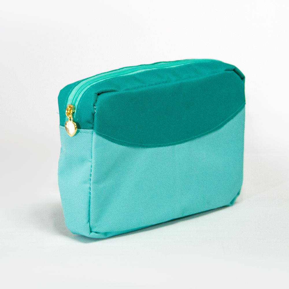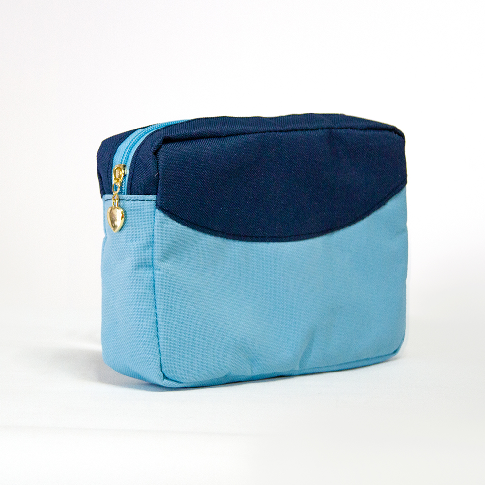 Cosmetiquera de poliéster y cierre con detalle de corazón.