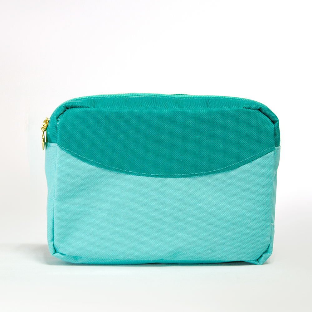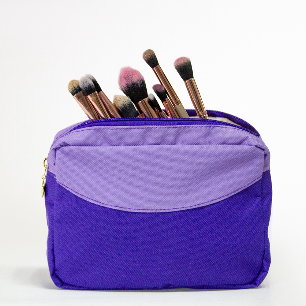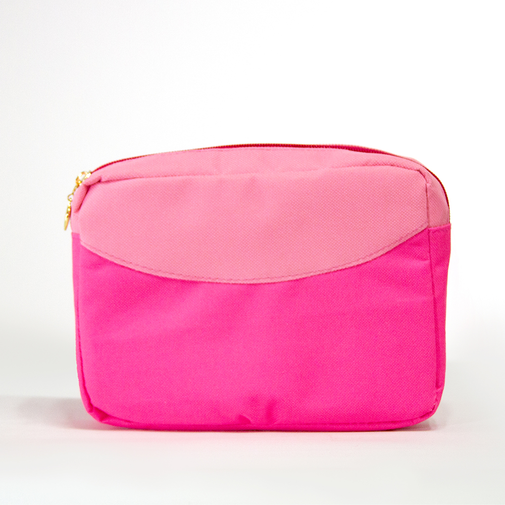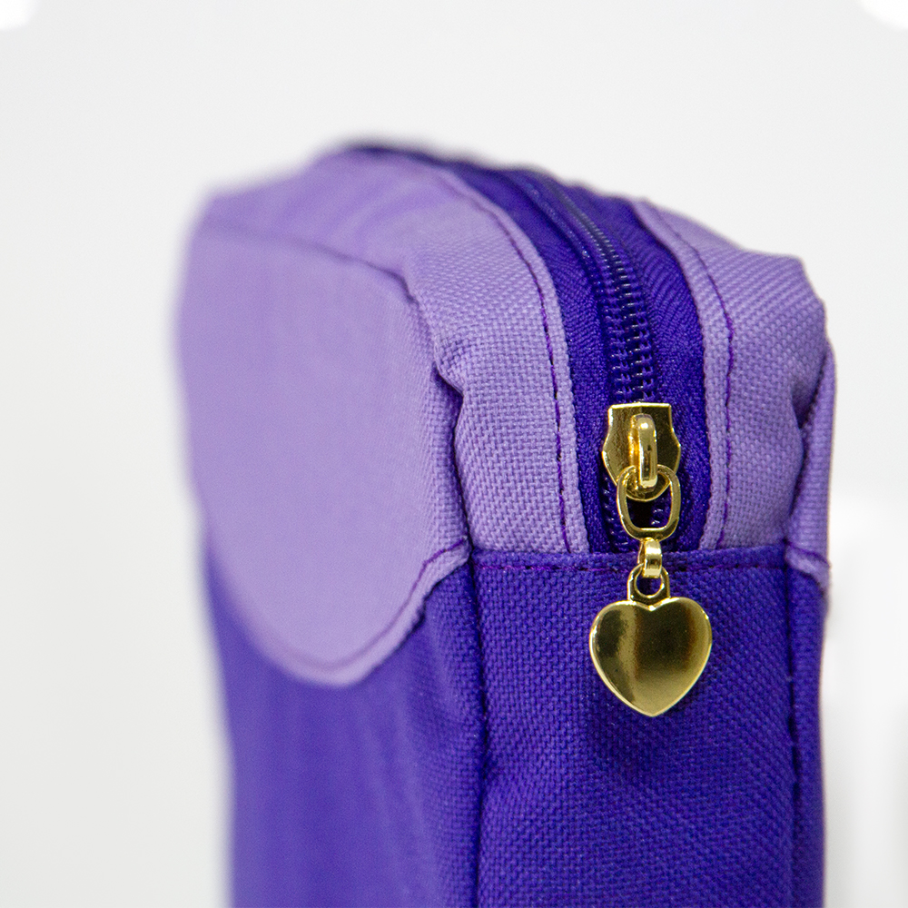 Cosmetiquera de poliéster y cierre con detalle de corazón.