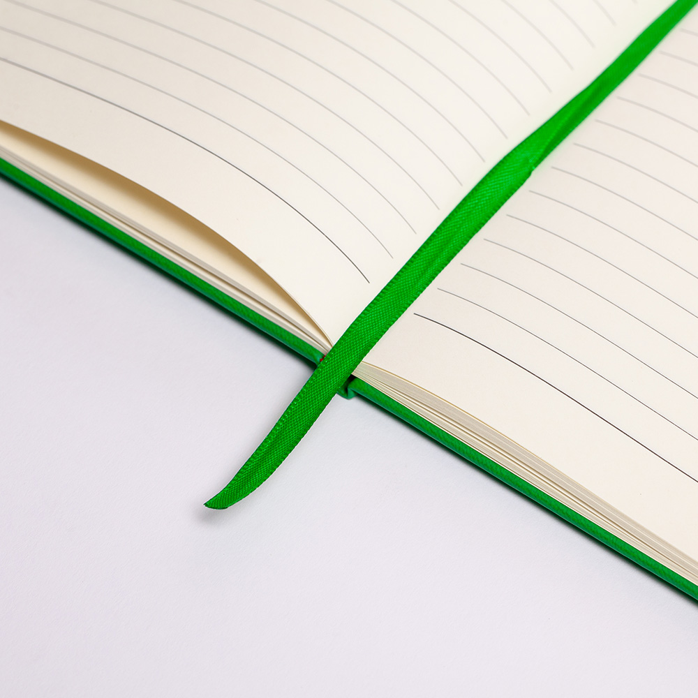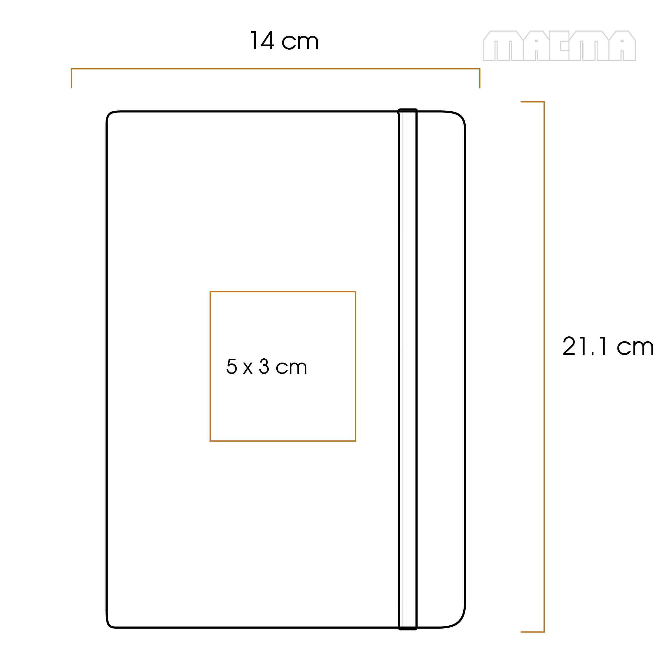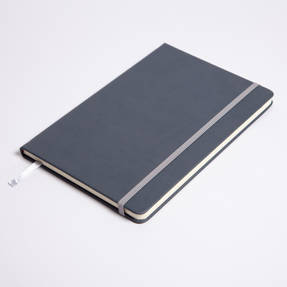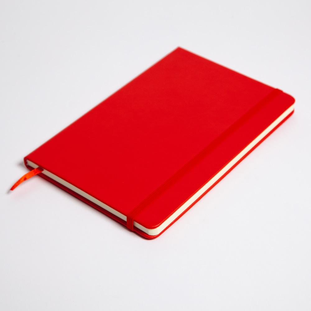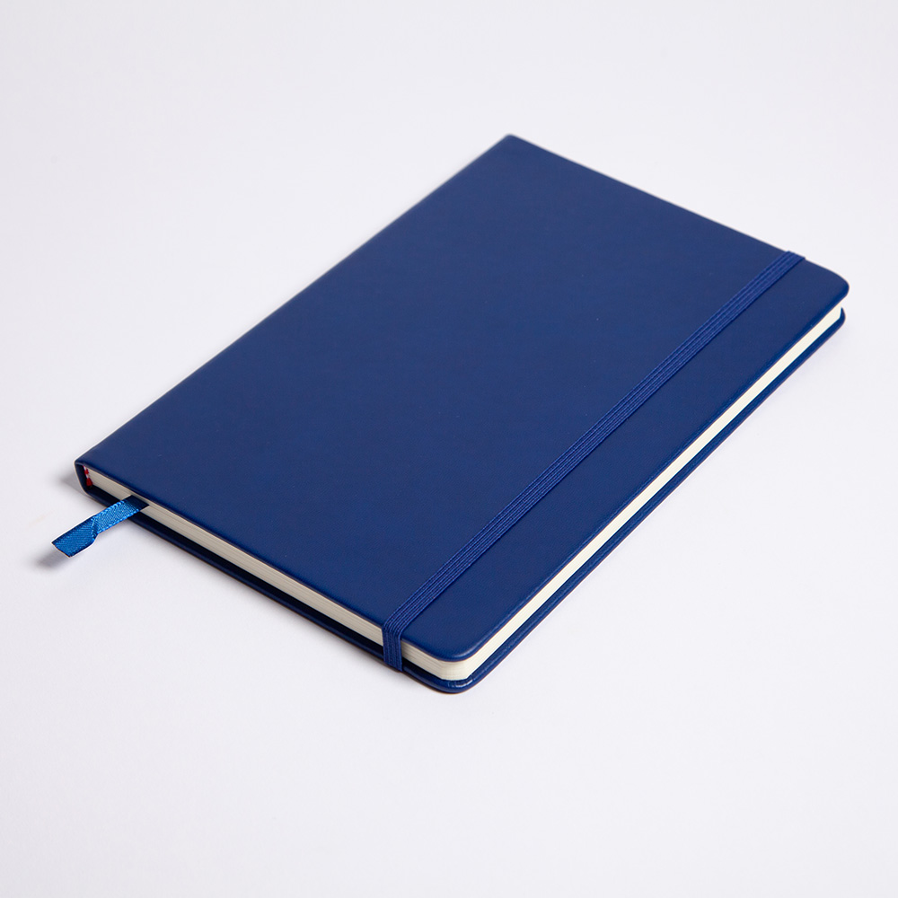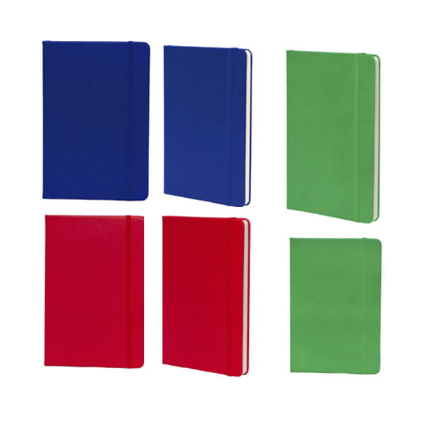 Libreta de cubierta dura de PU, banda elestica y separador con 96 hojas rayadas.