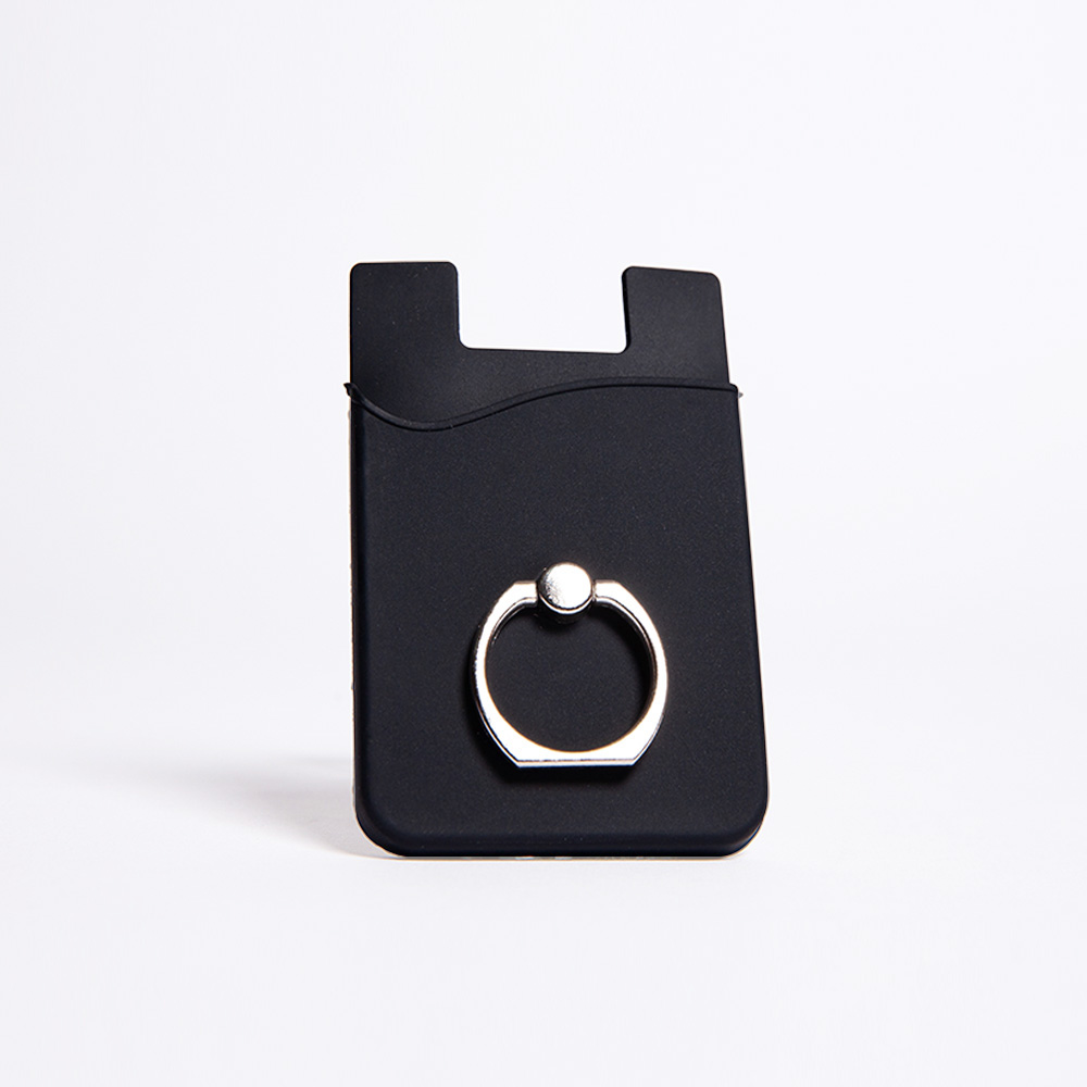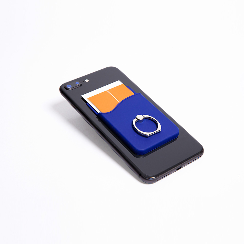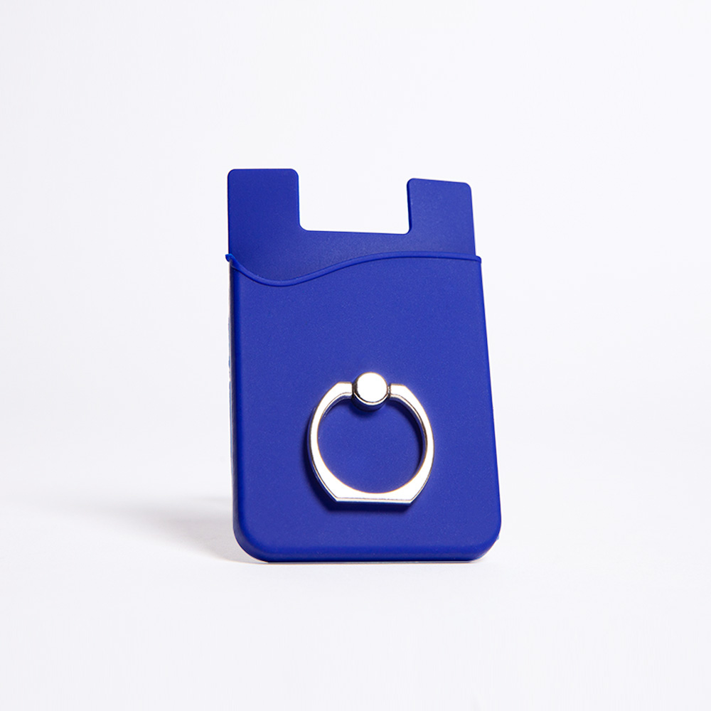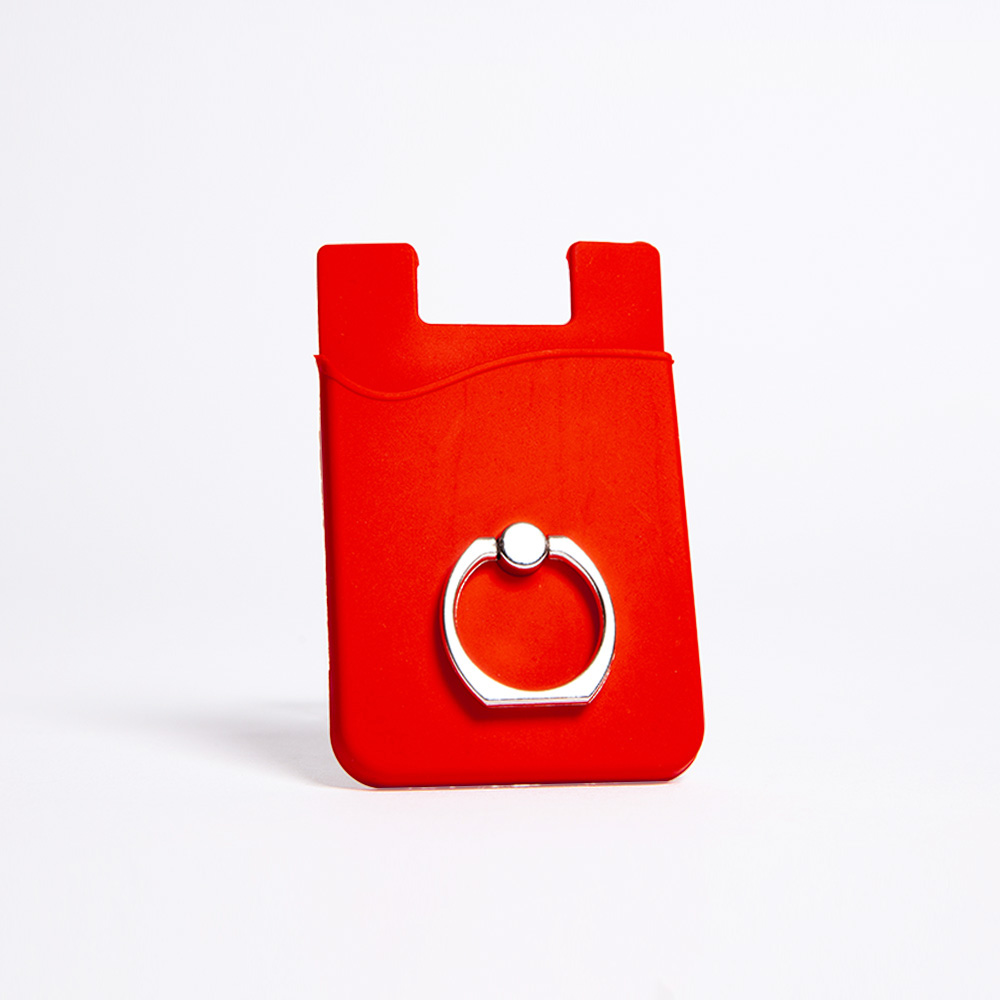 Bolsillo - tarjetero de silicón, con anillo metálico sujetador para celulares.