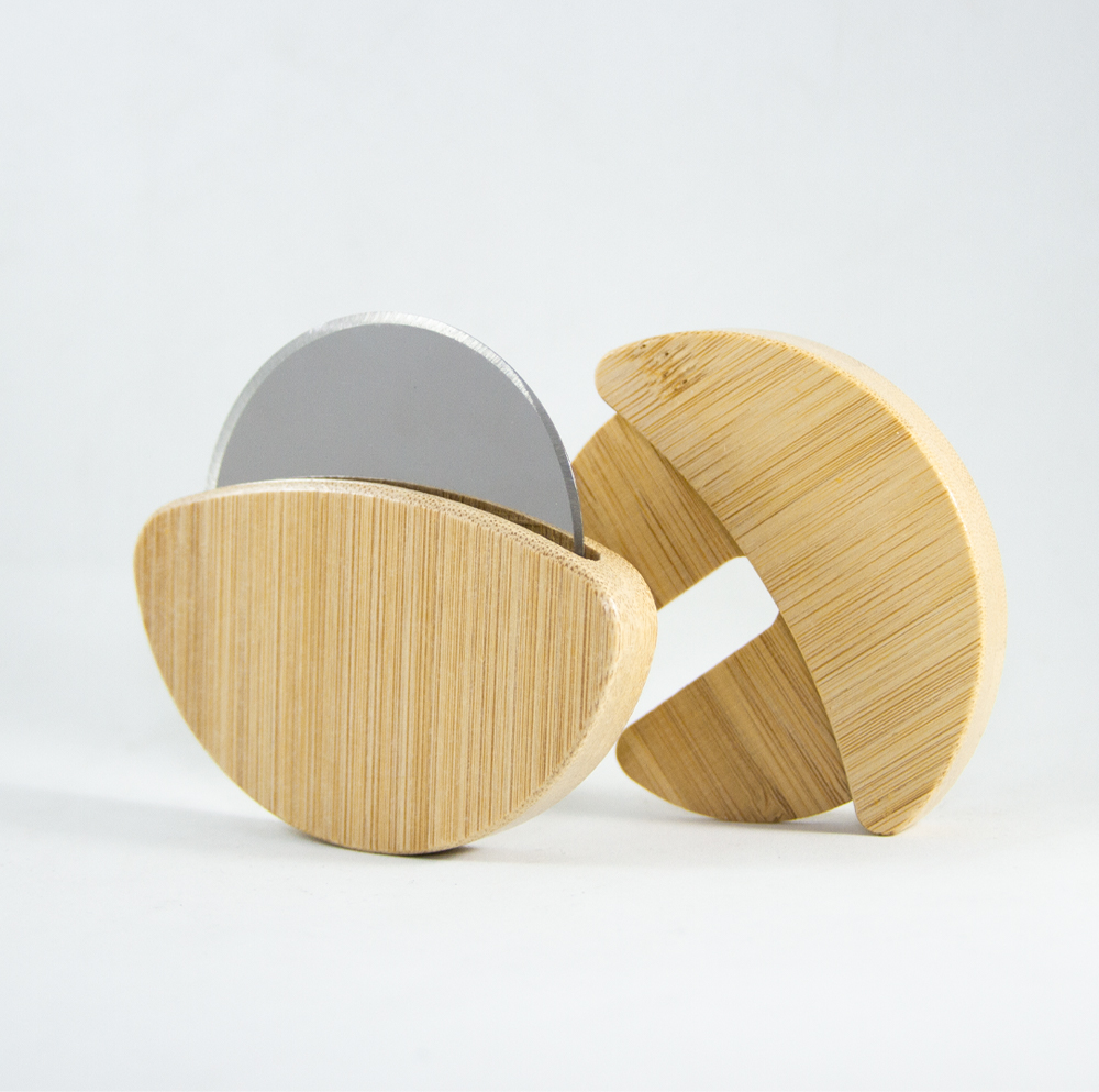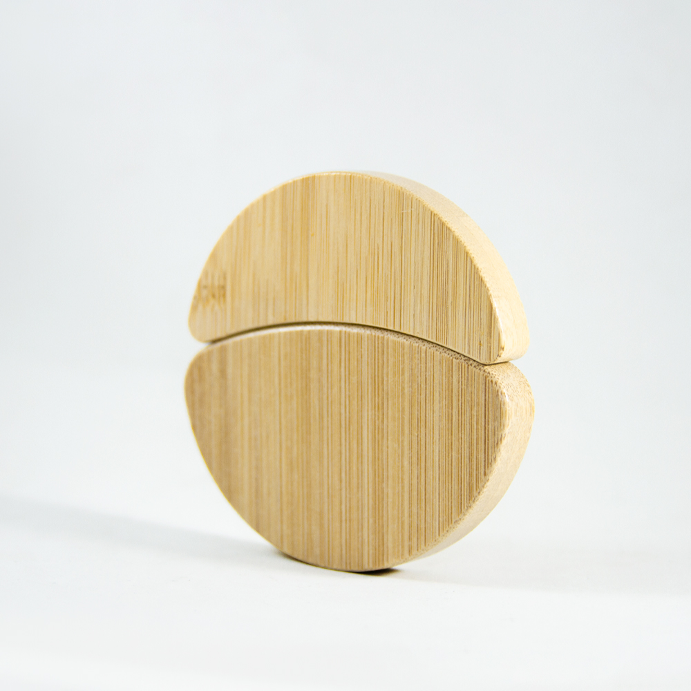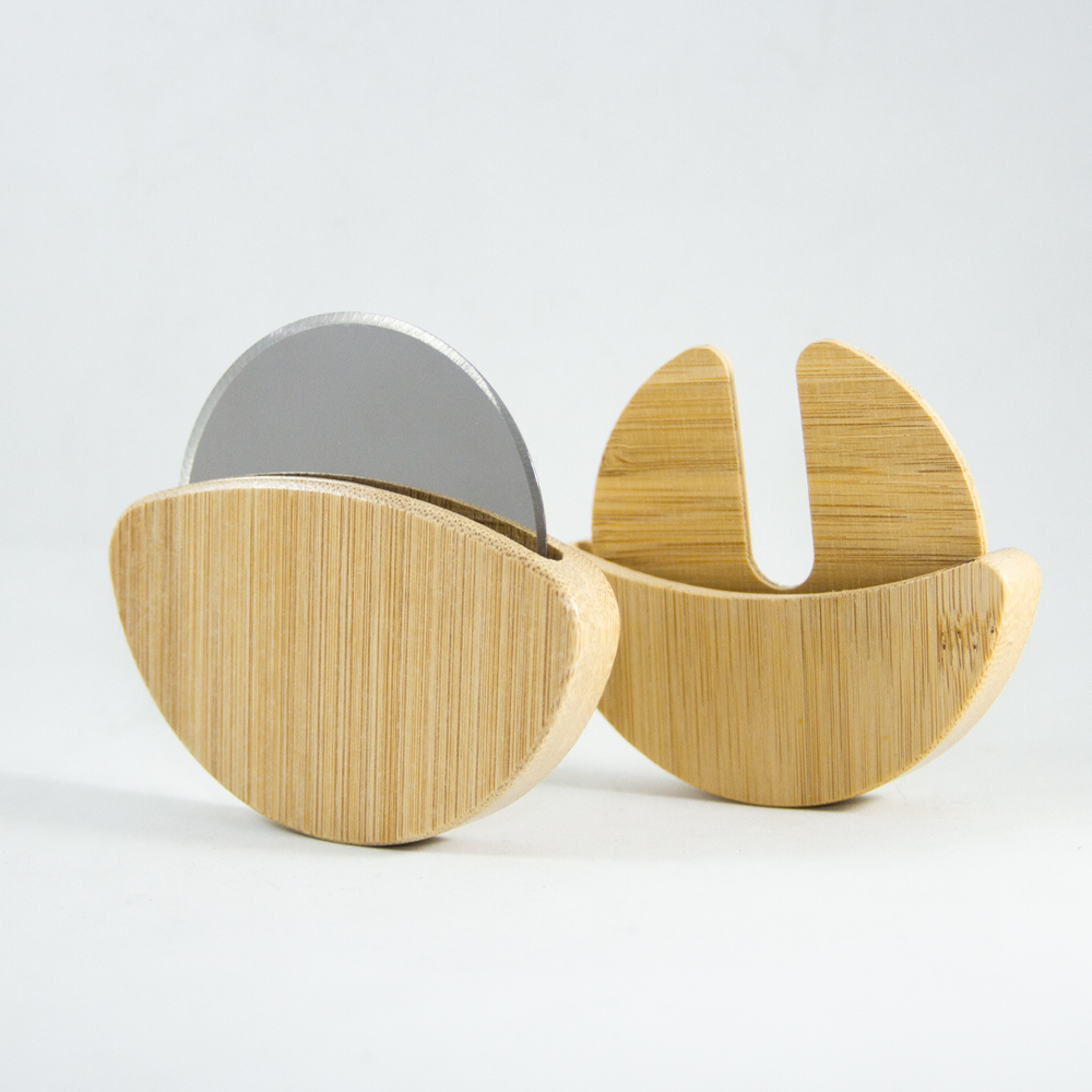 Cortador de pizza metálico con cubierta y tapa de bambú.