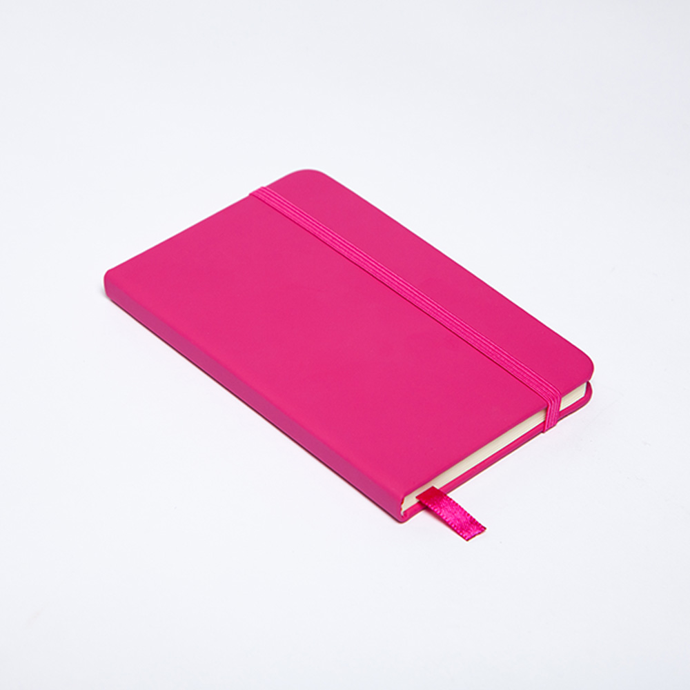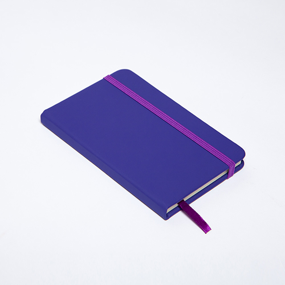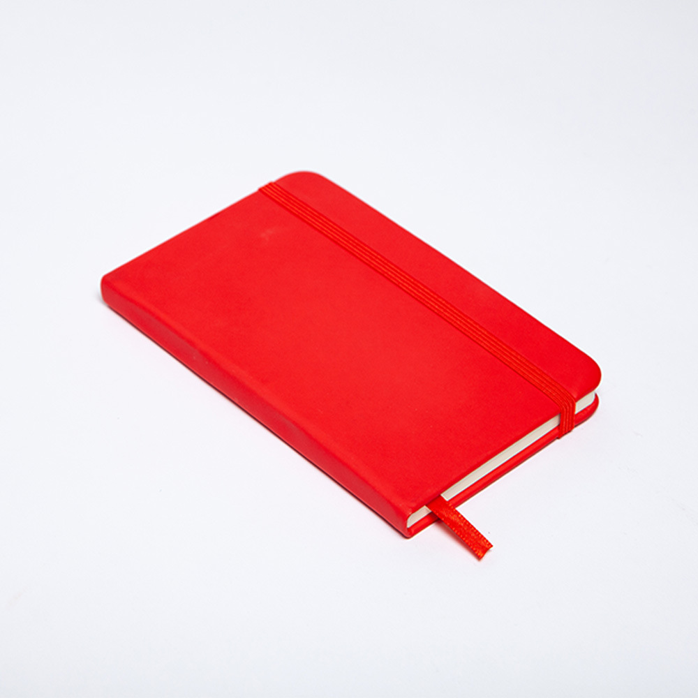 Libreta de cubierta dura de PU, banda elestica y separador con 96 hojas rayadas.