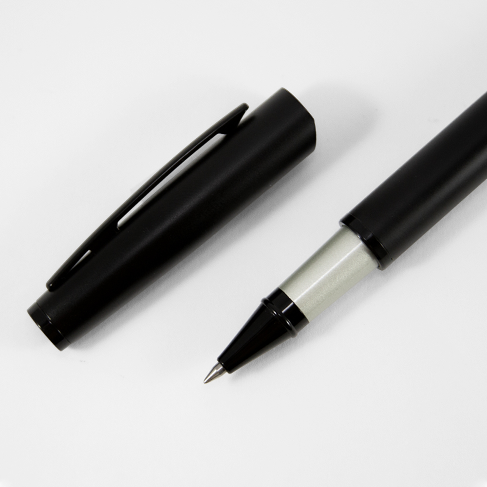 Bolígrafo metálico tipo Roller. Incluye estuche.