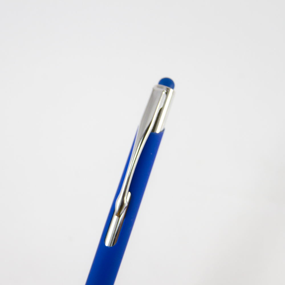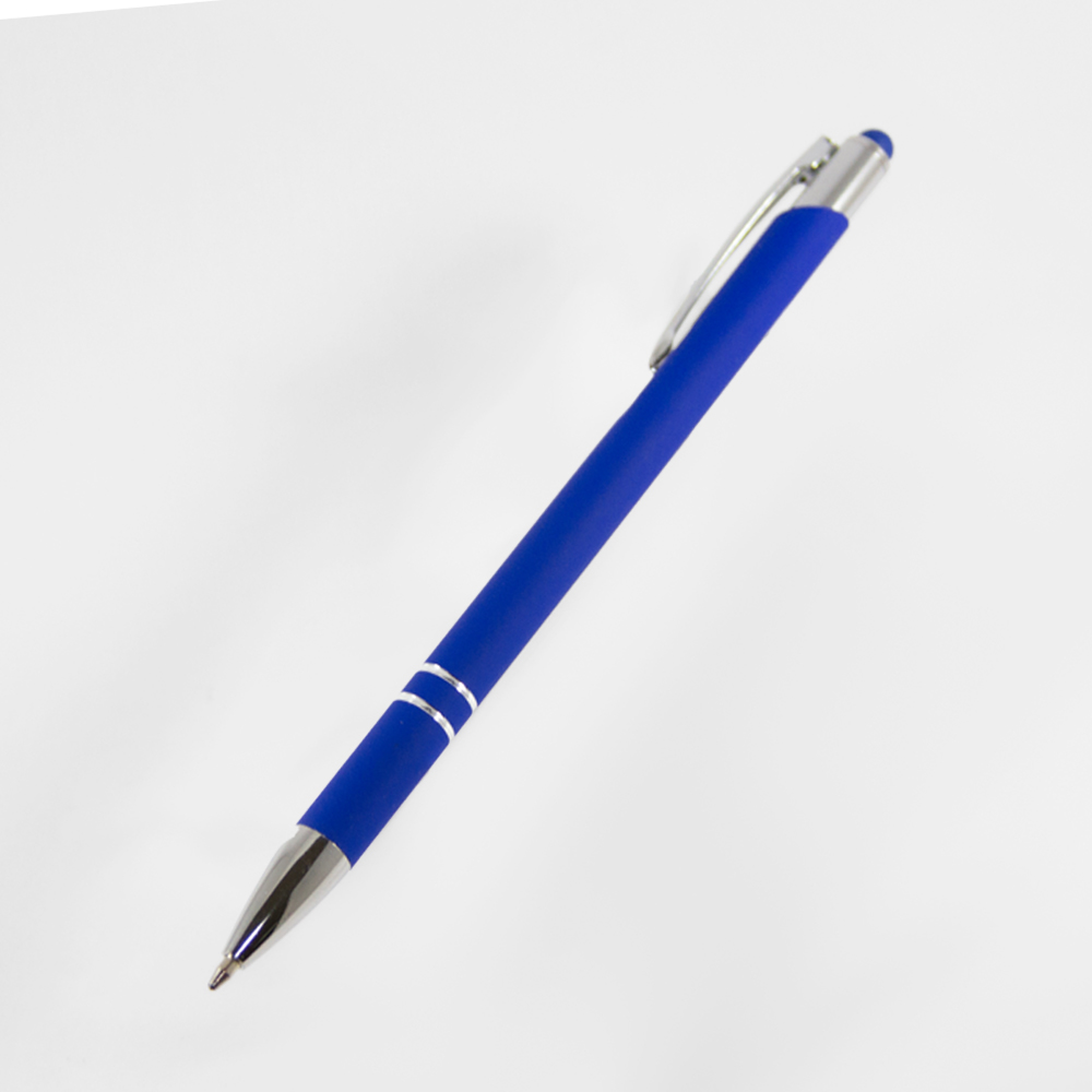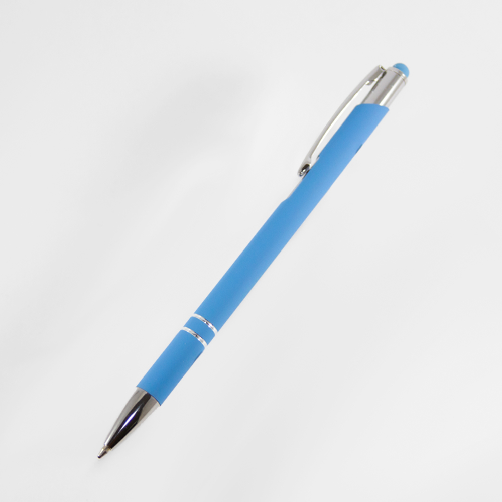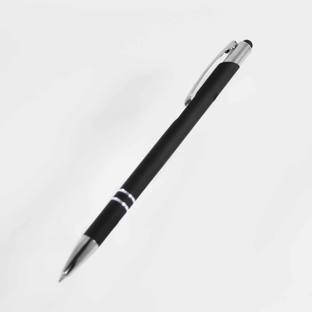 Bolígrafo de aluminio con recubrimiento rubber con mecanismo retráctil y función touch.