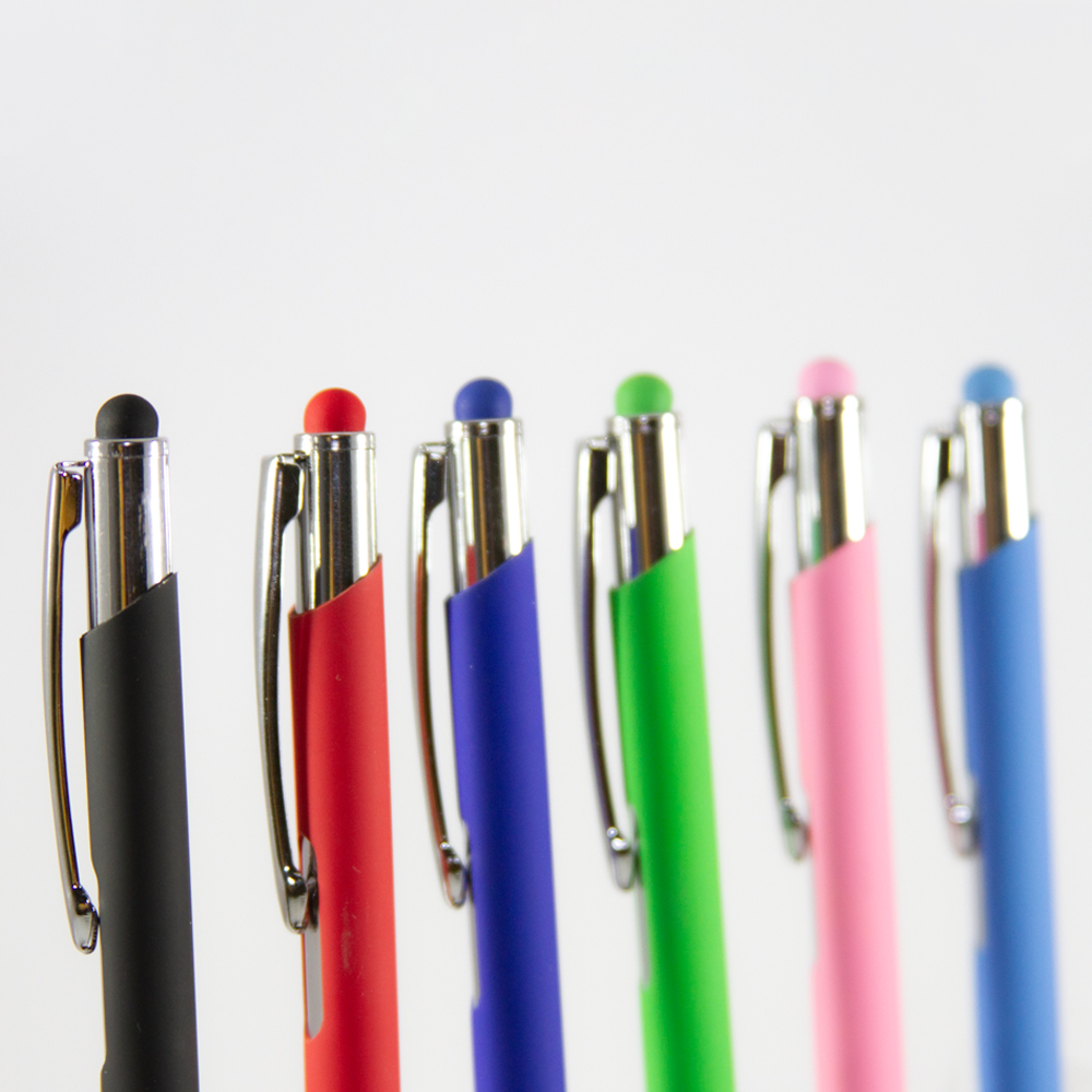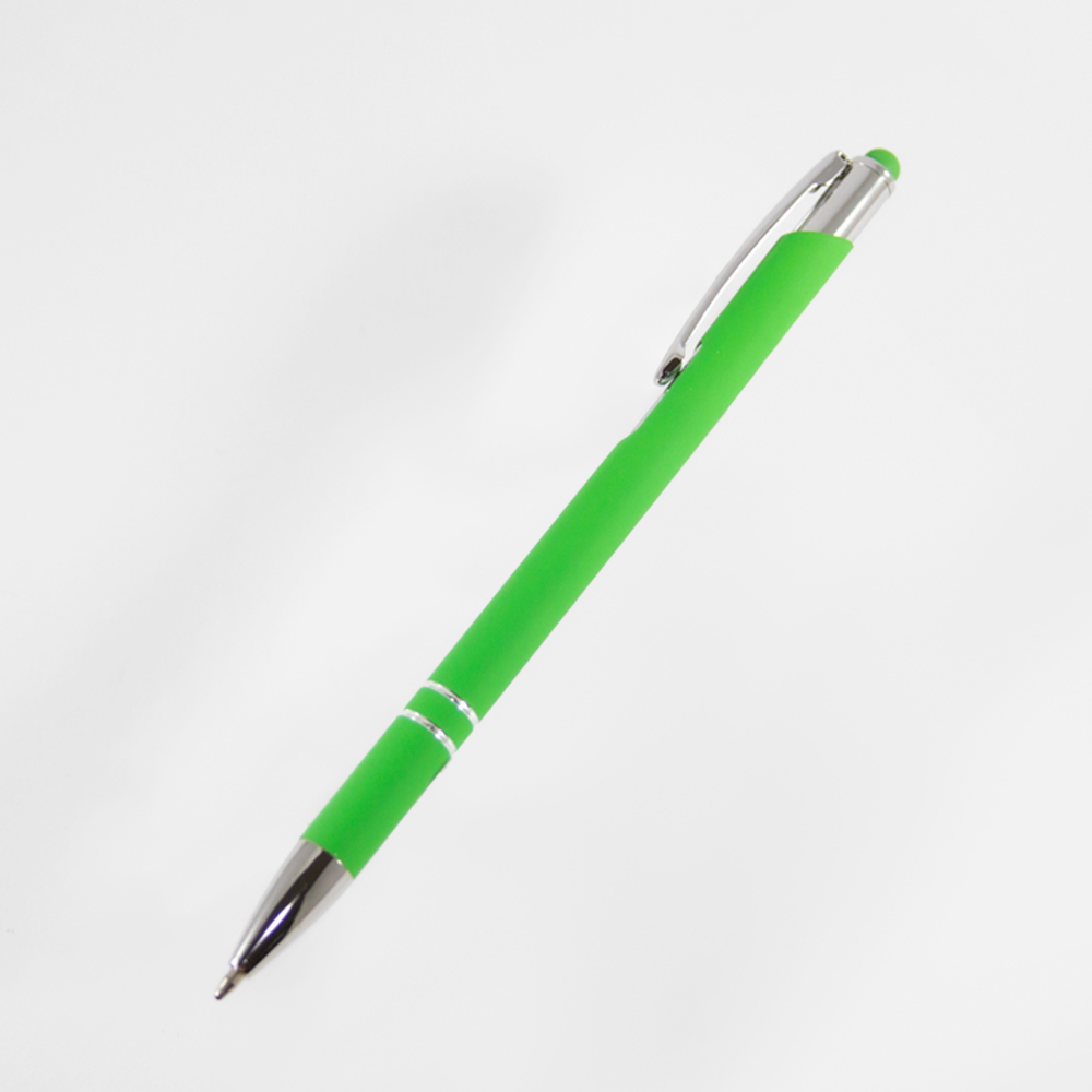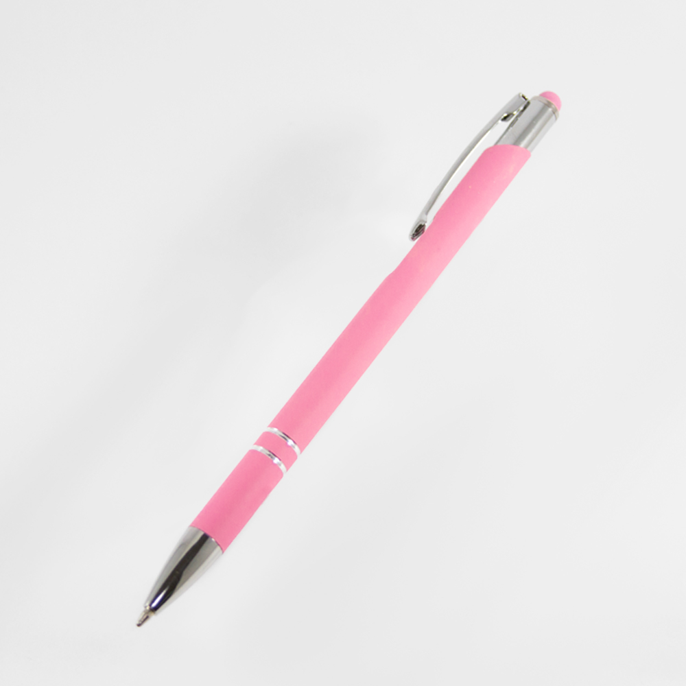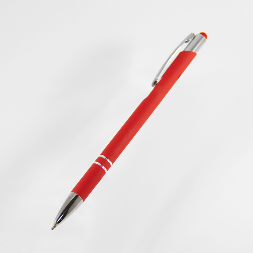 Bolígrafo de aluminio con recubrimiento rubber con mecanismo retráctil y función touch.