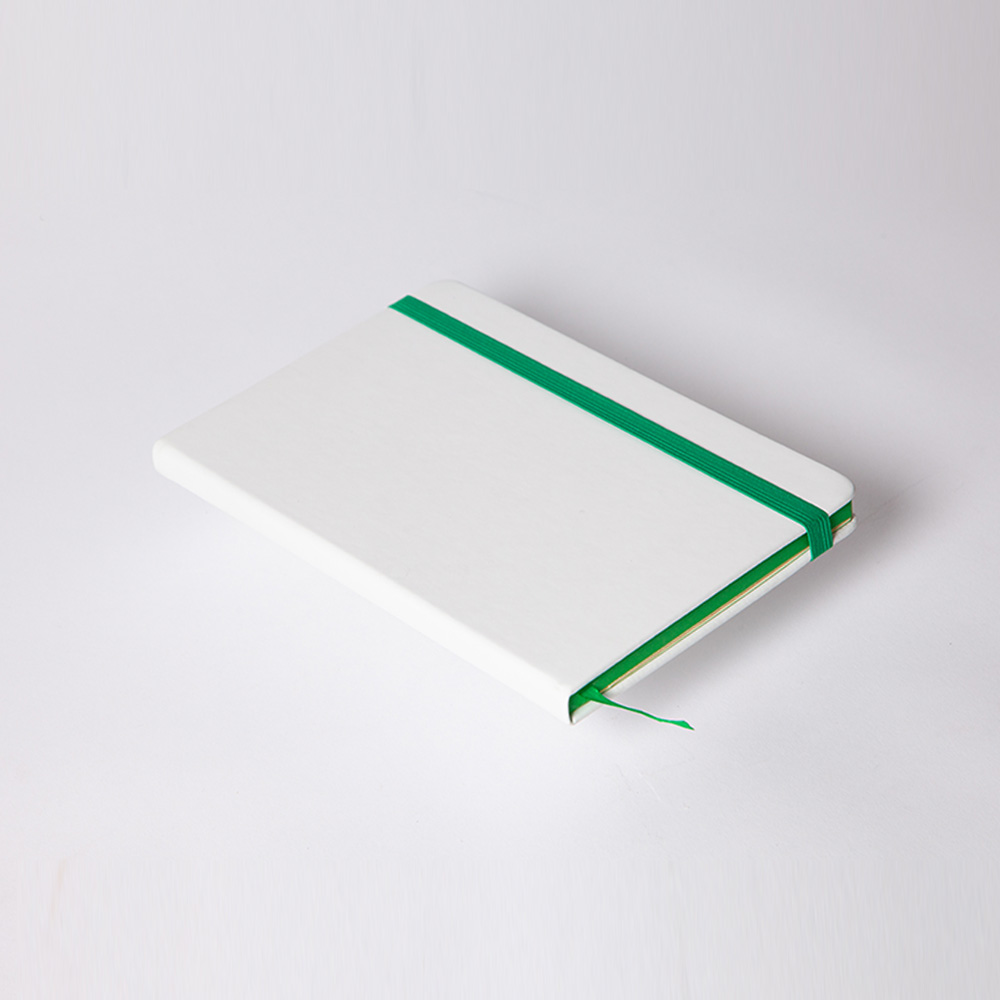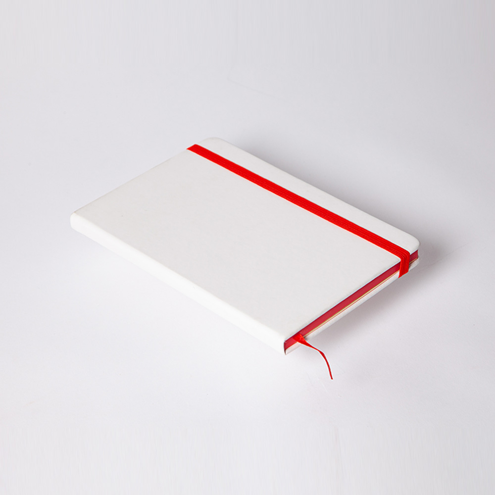 Libreta con cubierta dura de PU. Canto, banda elástica y separador del mismo color, 80 hojas rayadas y sobre porta documentos. Recomendamos imprimir en termograbado para que su logo destape a color.