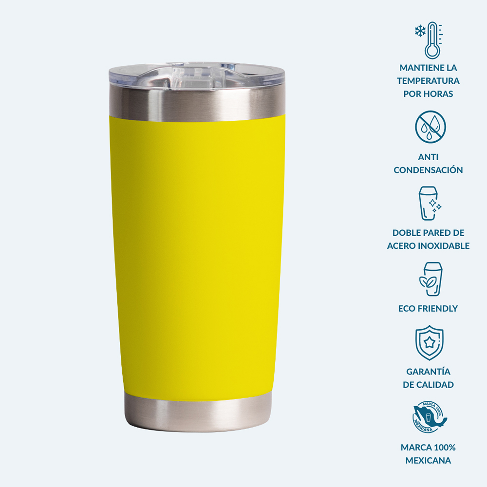 Termo de acero inoxidable con grado cocina libre de BPA, cuenta con una doble pared grado 18/8 anti condensación, la cual permite mantener la temperatura ideal de tu bebida hasta el último trago, aislando el calor y el frío del ambiente. Su composición de alta calidad lo vuelve resistente a la perforación y corrosión, brindado un producto de alta durabilidad. Producto de fácil lavado, permitido en lavavajillas. Capacidad 591 ml.